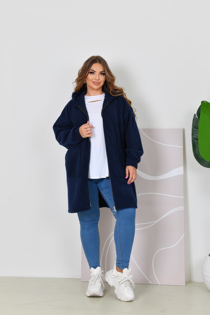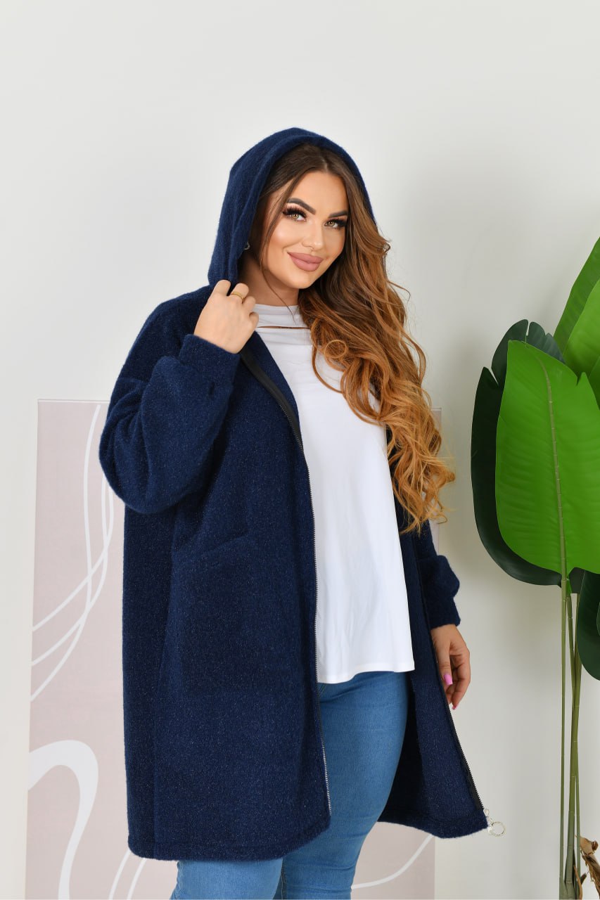 Невероятно стильный, комфортный кардиган из мягкого ворсистого трикотажа (средняя растяжимость). Кардиган имеет прямой свободный силуэт и капюшон. Линия плеча спущена, рукав на манжете. Застёгивается на молнию. Впереди есть две накладные