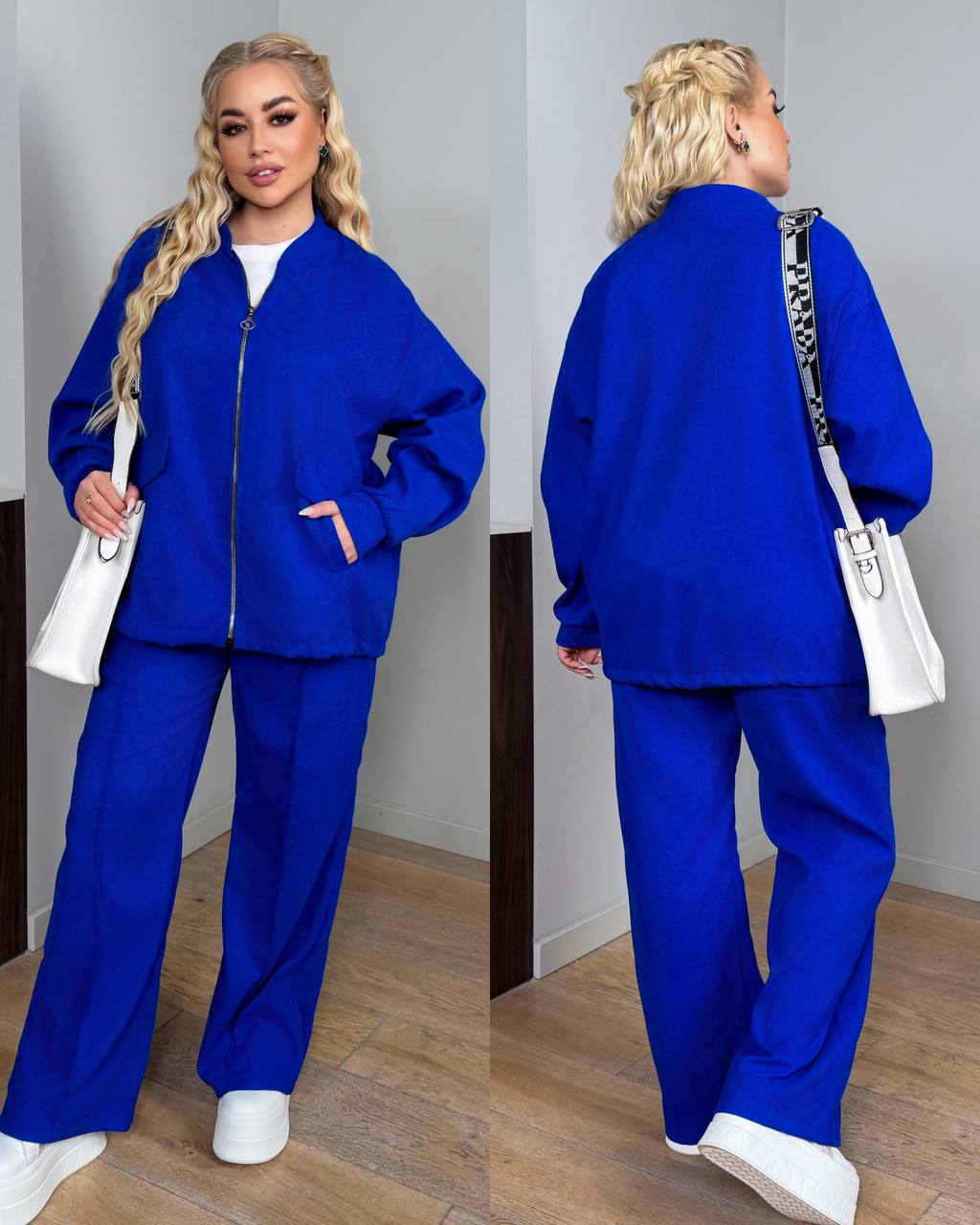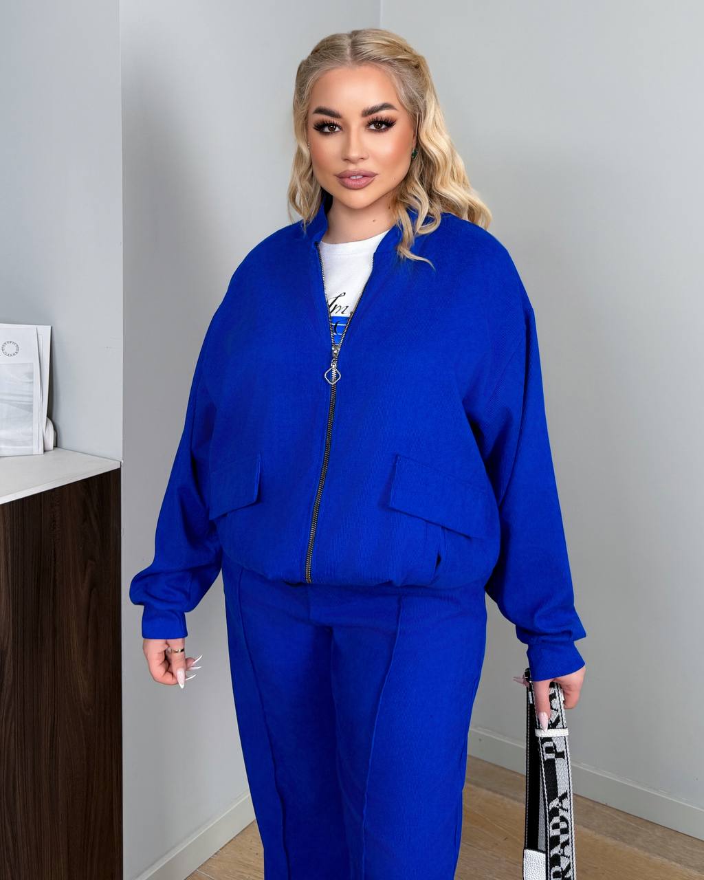 Стильный и комфортный костюм-тройка, состоящий из кофты на молнии, брюк и футболки. Легкая мягкая ткань приятна к телу и не ограничивает движения — идеальный вариант для ежедневного ношения.