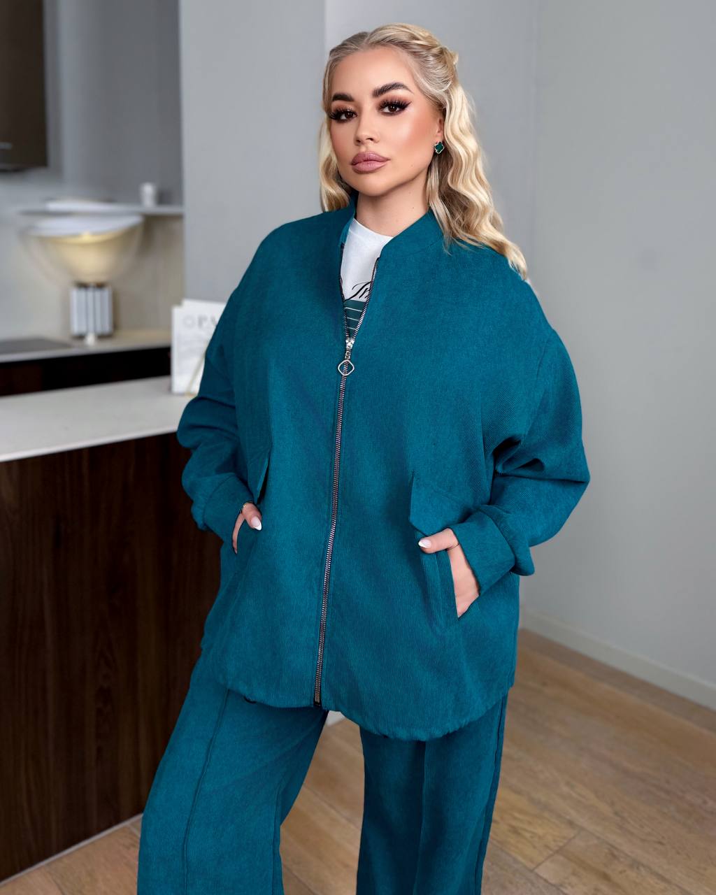 Стильный и комфортный костюм-тройка, состоящий из кофты на молнии, брюк и футболки. Легкая мягкая ткань приятна к телу и не ограничивает движения — идеальный вариант для ежедневного ношения.