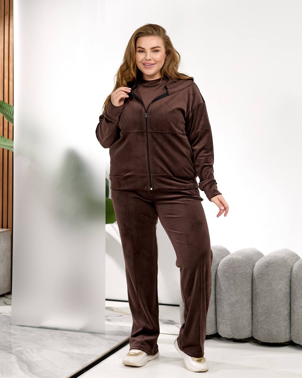Удобный и комфортный костюм. Футболка с брюками в день, а в вечерние добавляем кофту. Ткань супер качества. Футболка с удлиненным рукавом, брюки прямого кроя, средней посадки с карманами, пояс на резинке. Кофта с капюшоном, со спущенными плечами, карманами по бокам, на змейке.