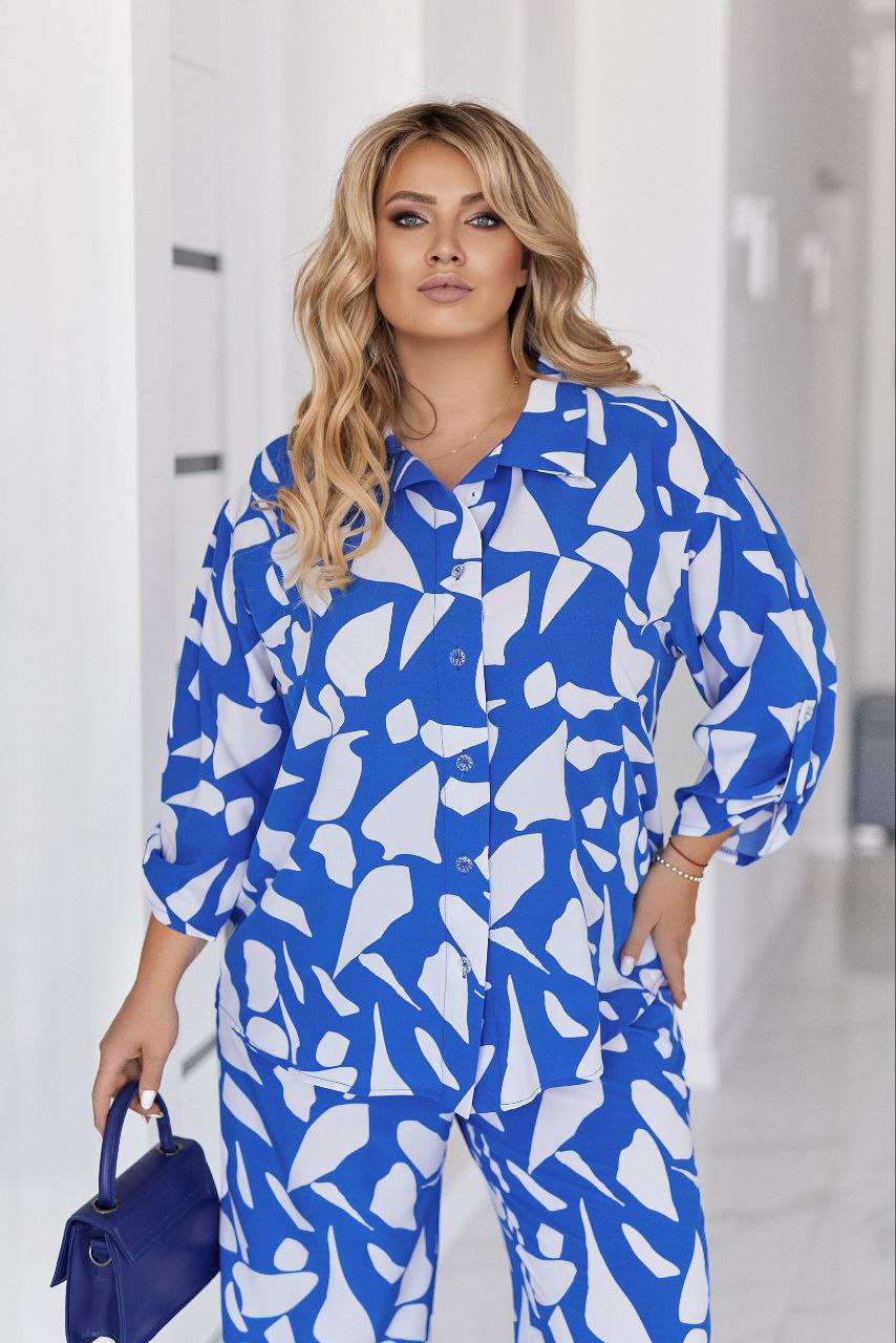Элегантный костюм, состоящий из рубашки свободного кроя и брюк-Палаццо.