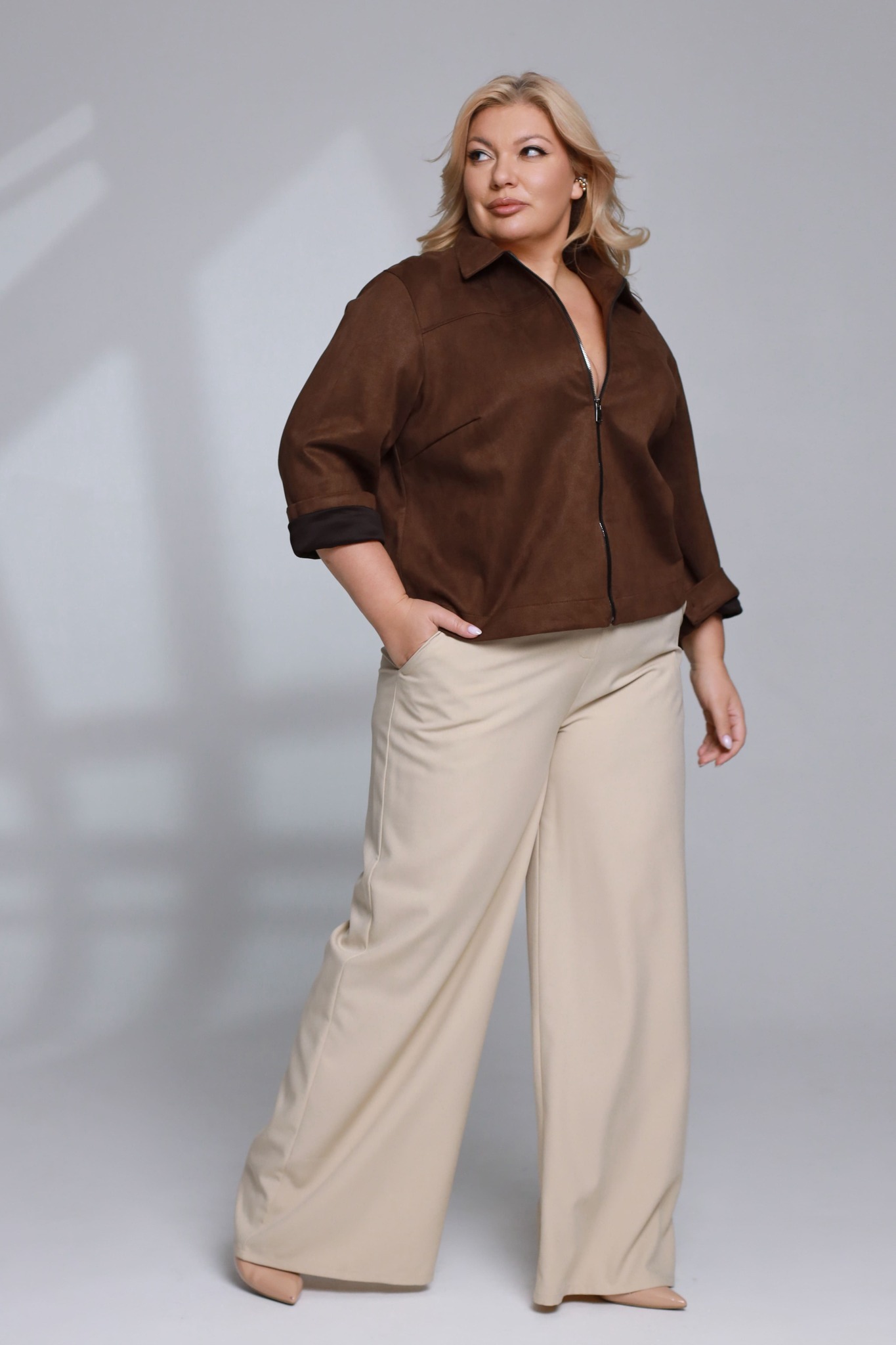 Брюки прямые с карманами бежевые