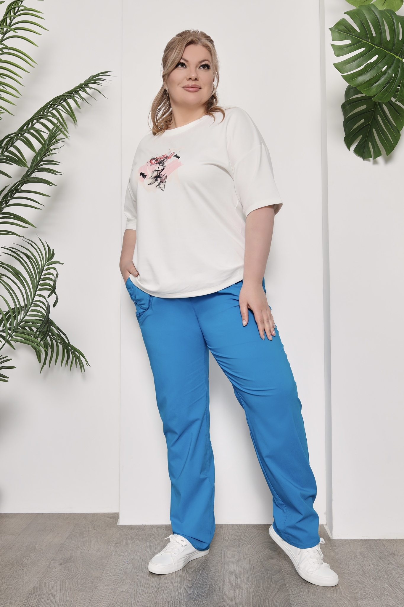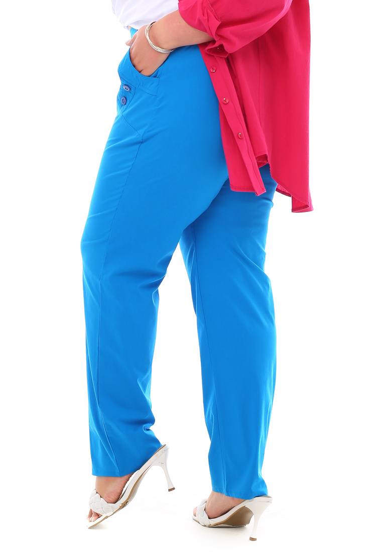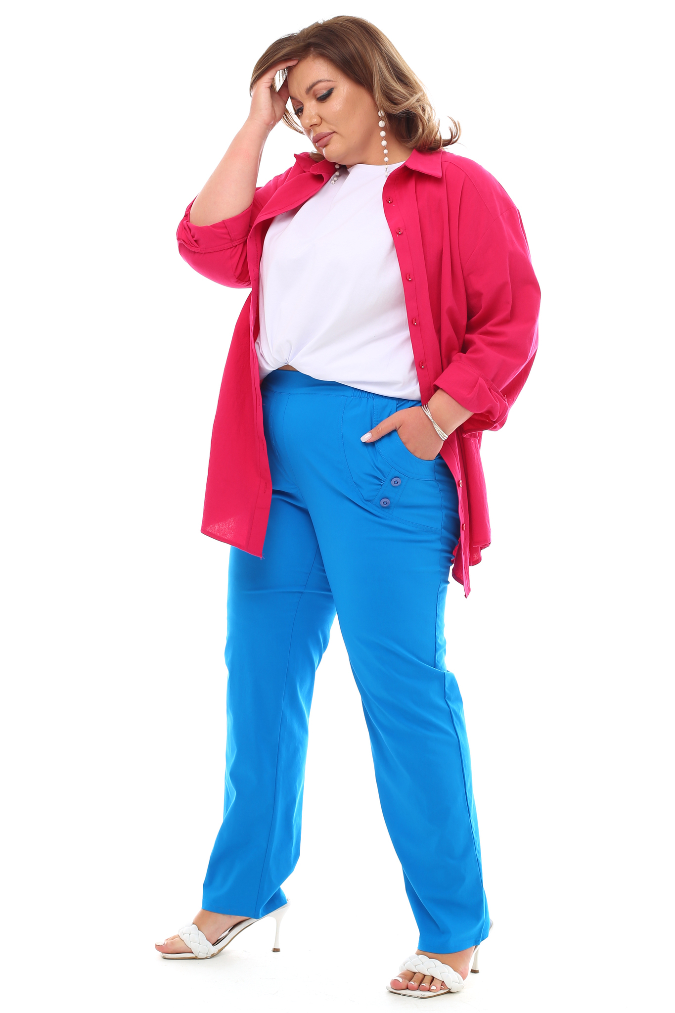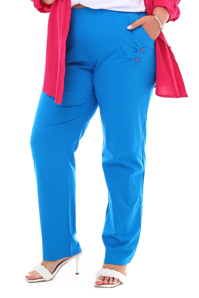 Брюки-стрейч прямого силуэта выполнены из мягкой легкой ткани. отлично сидят за счет эластичной резинки на поясе. карманы по бокам украшены пластиковыми пуговицами. модель с высокой посадкой не сковывает движений. слегка зауженные книзу брючины визуально стройнят.