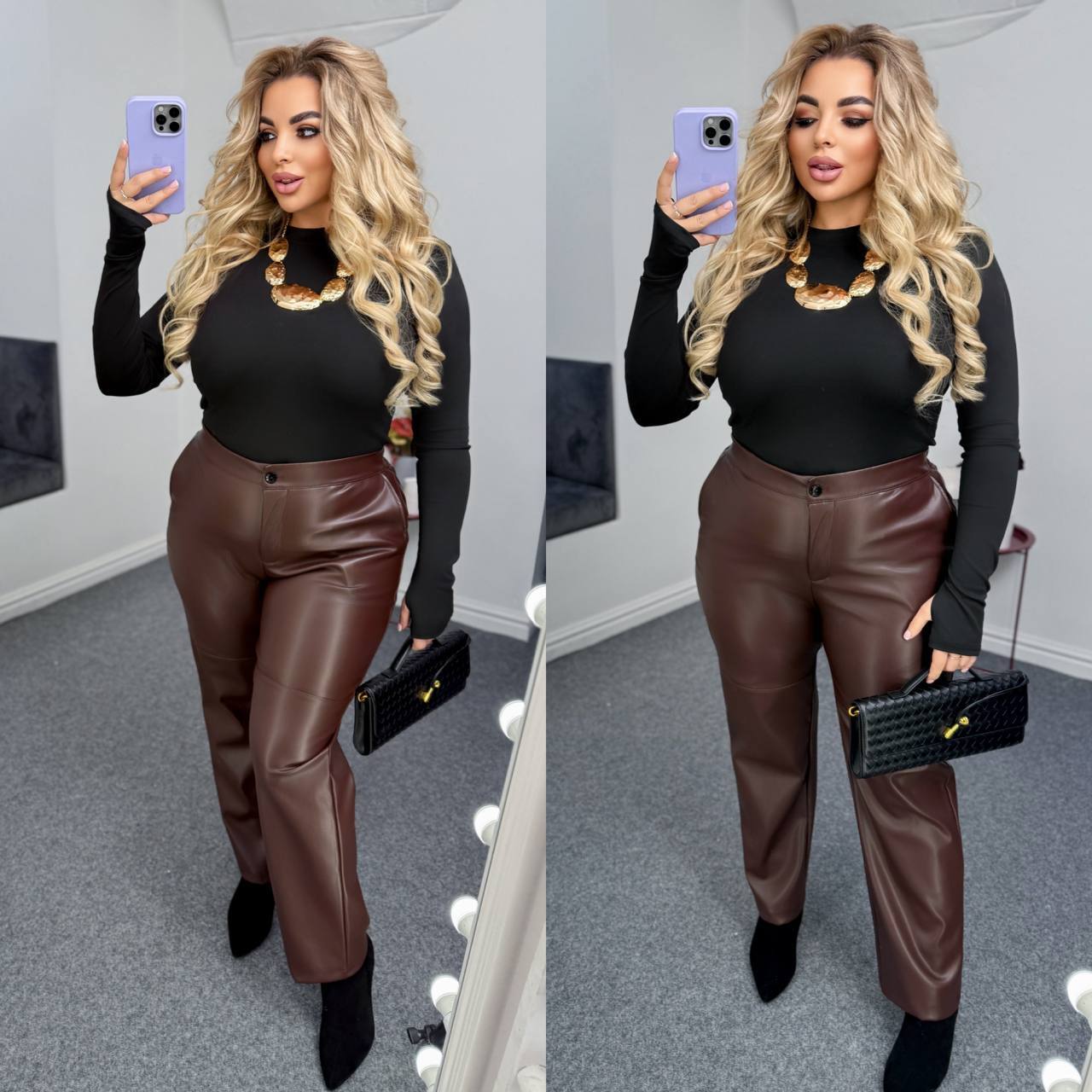 Кожаные брюки на велюре ✨