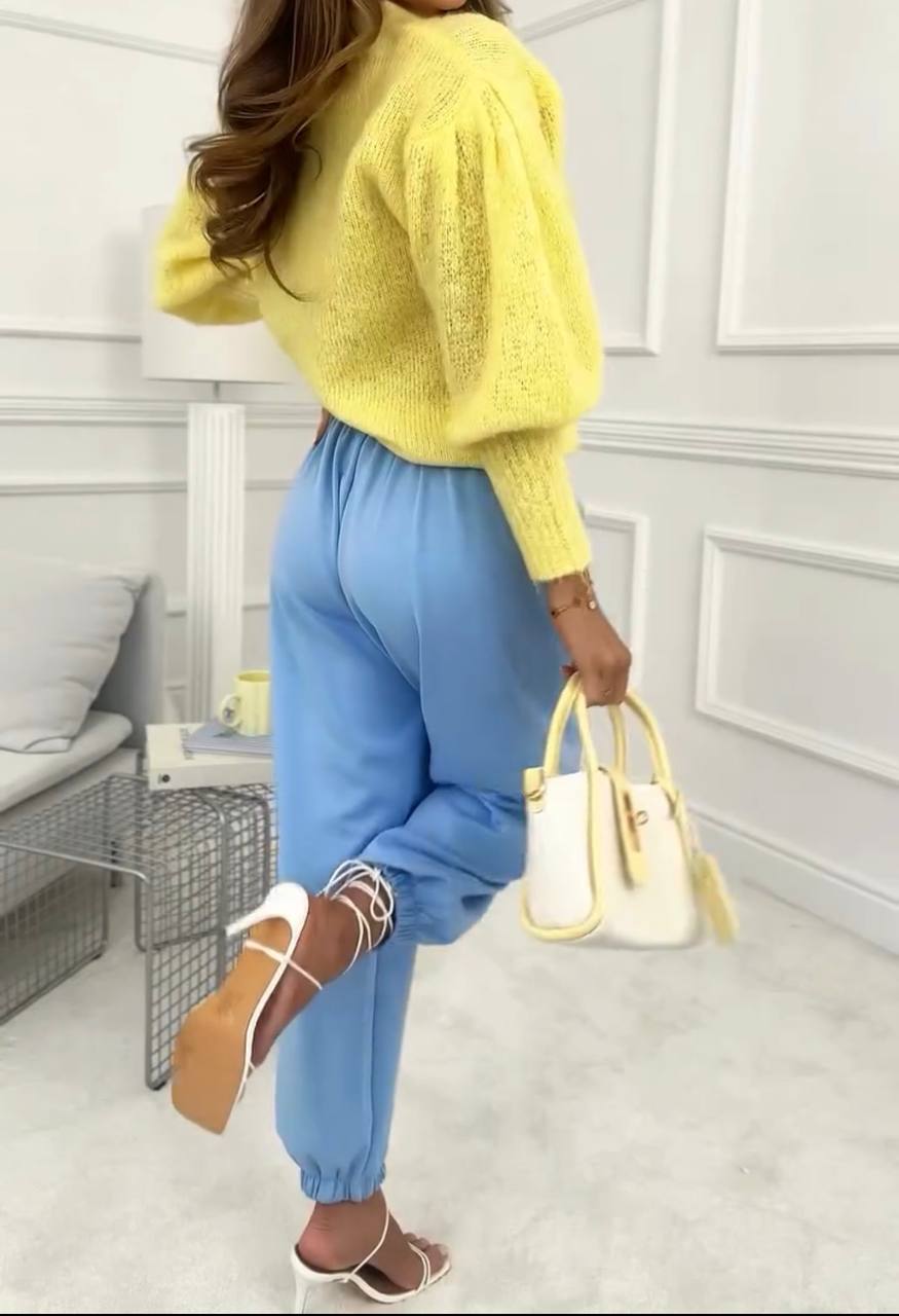 Брюки в поясе по спинке резинка, есть карманы, резинка на манжете снизу брюк.