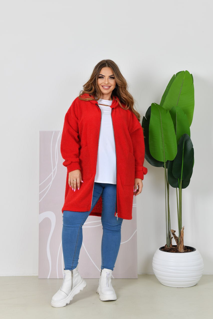 Невероятно стильный, комфортный кардиган из мягкого ворсистого трикотажа (средняя растяжимость). Кардиган имеет прямой свободный силуэт и капюшон. Линия плеча спущена, рукав на манжете. Застёгивается на молнию. Впереди есть две накладные