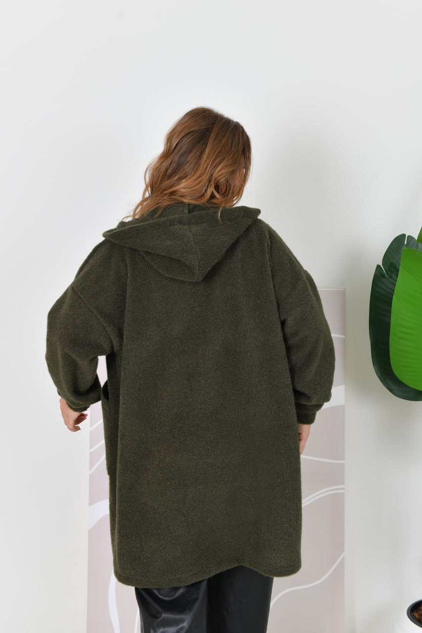 Невероятно стильный, комфортный кардиган из мягкого ворсистого трикотажа (средняя растяжимость). Кардиган имеет прямой свободный силуэт и капюшон. Линия плеча спущена, рукав на манжете. Застёгивается на молнию. Впереди есть две накладные