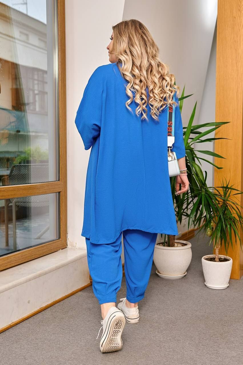 Костюм тройка - свободные брючки на резинке, с карманами, легкий кардиган, рукав 3/4, без застежки и блузка с небольшим спущенным рукавчиком