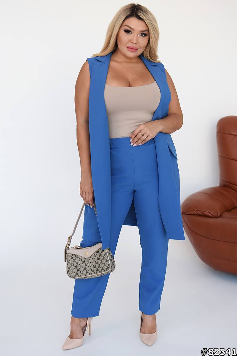 Жилет без подкладки, брюки с комфортной высокой посадкой, на талии резинка, есть карманы в боковых швах