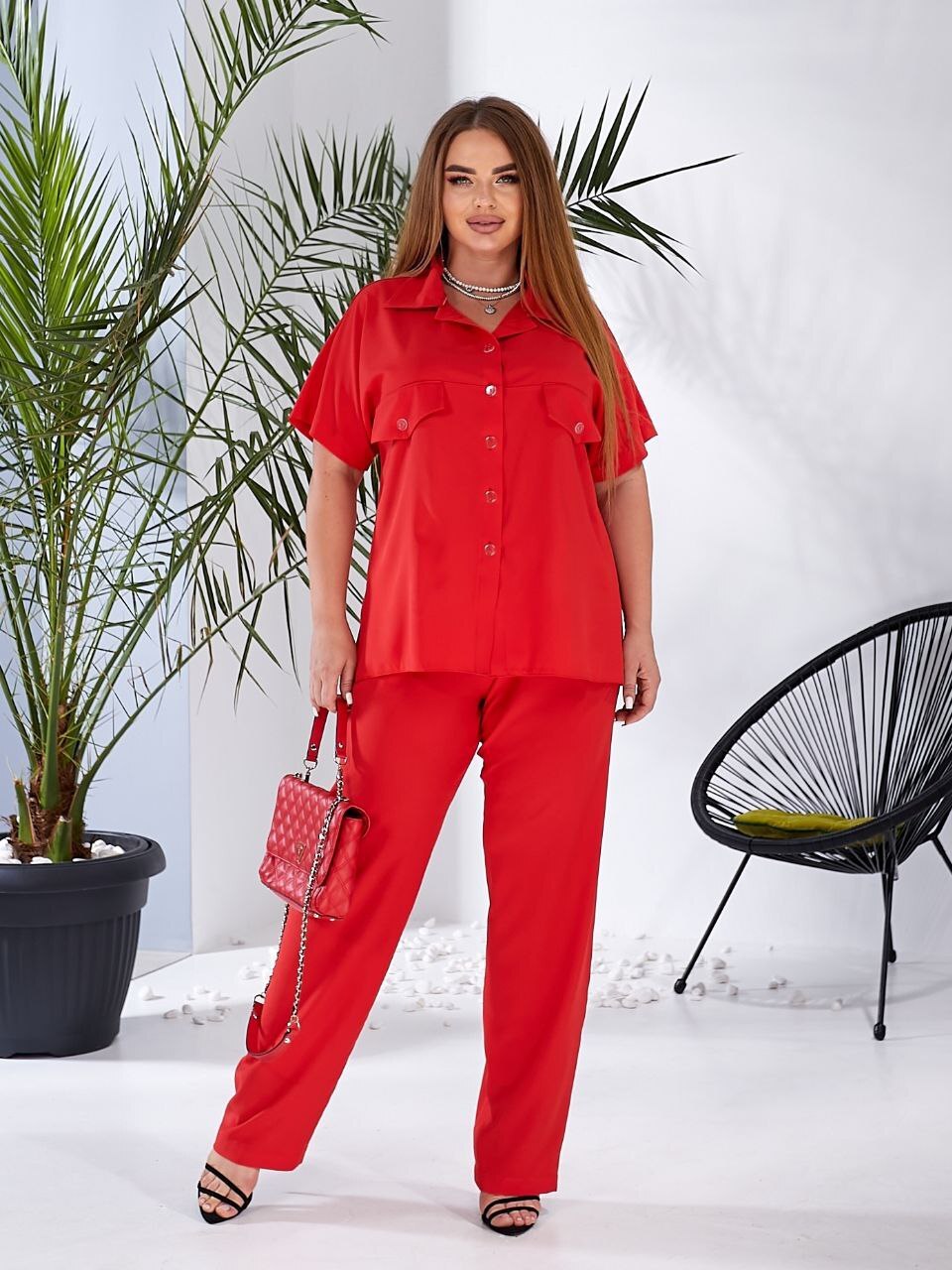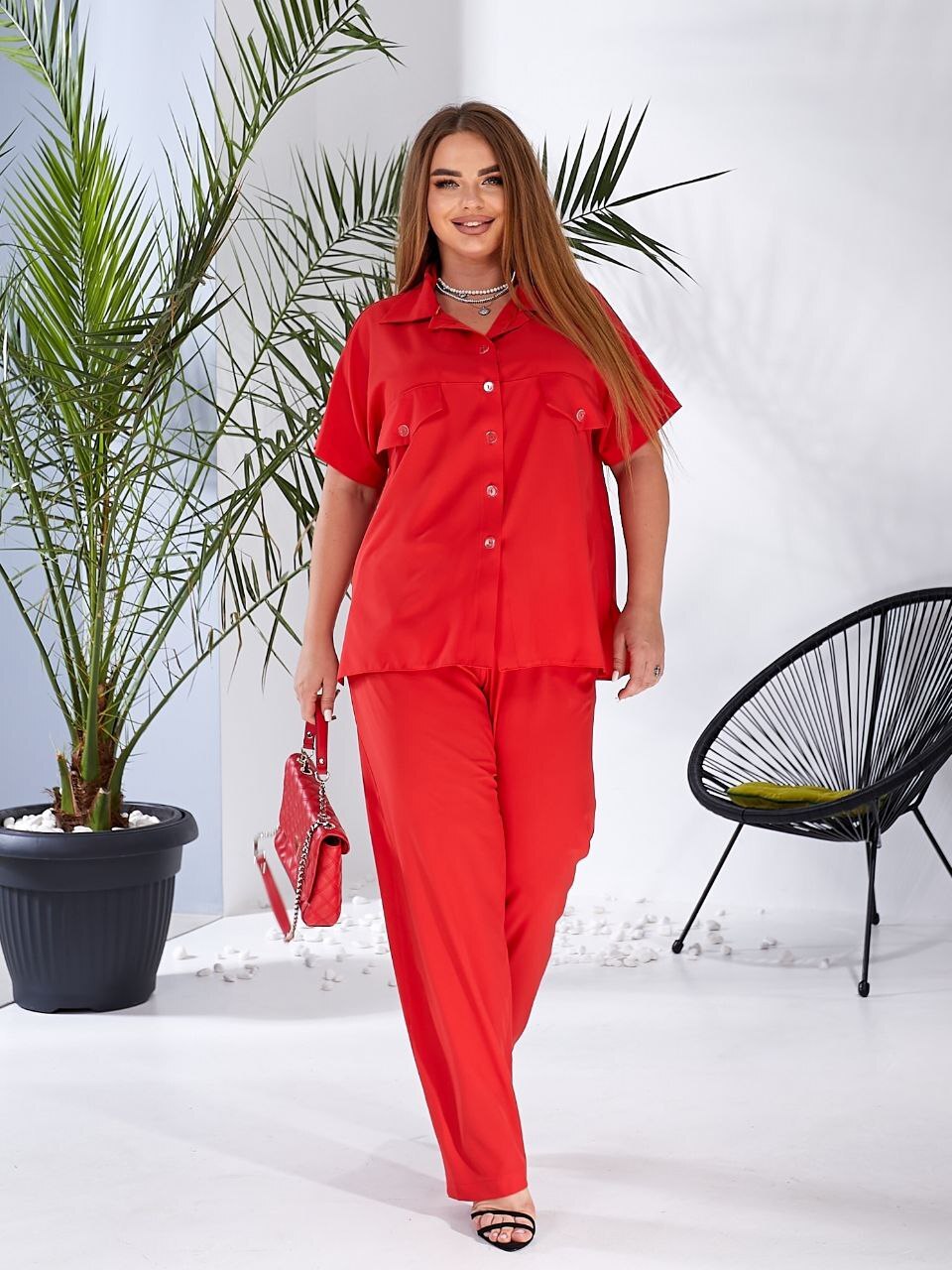 Удлиненная рубашка и брюки свободного кроя, отличная вещь на лето
