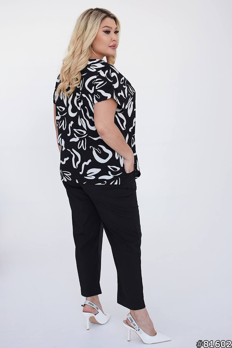 Легкая блузка с разрезами по бокам, брюки на резинке, с карманами