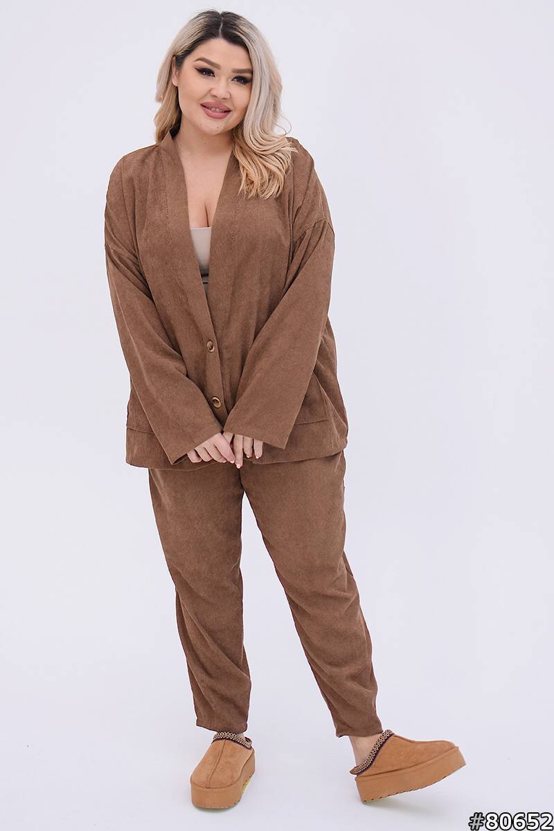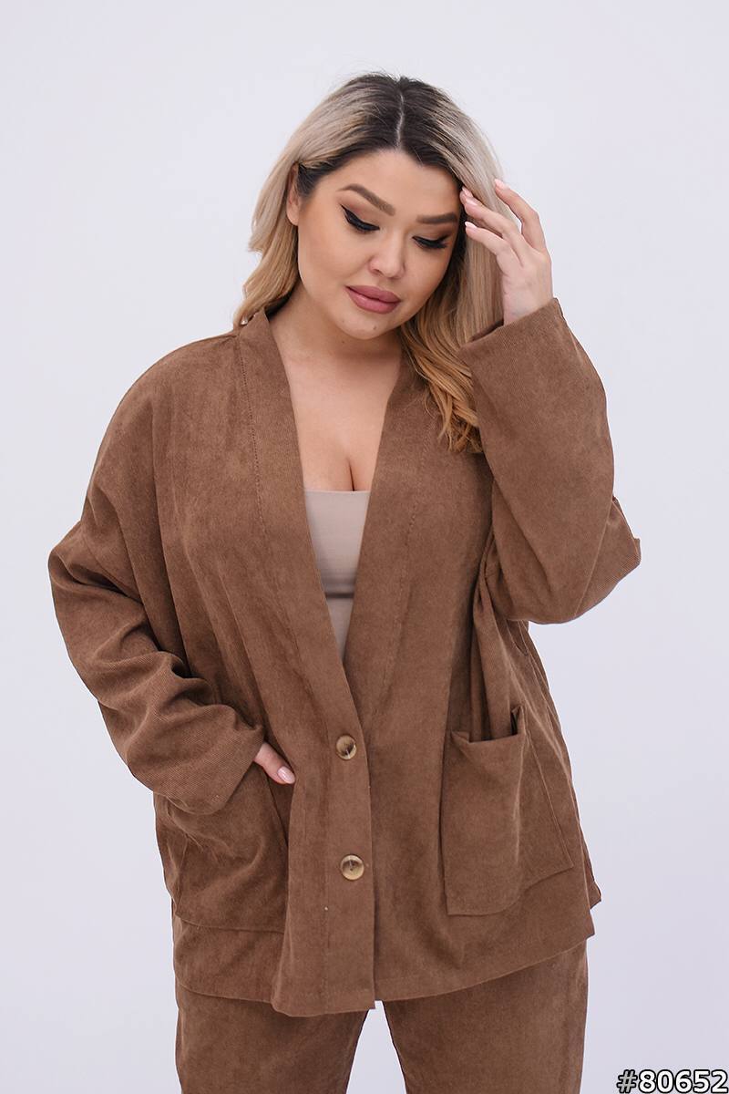 Кардиган свободного кроя, на пуговицах, с накладными карманами, штаны на резинке, с карманами