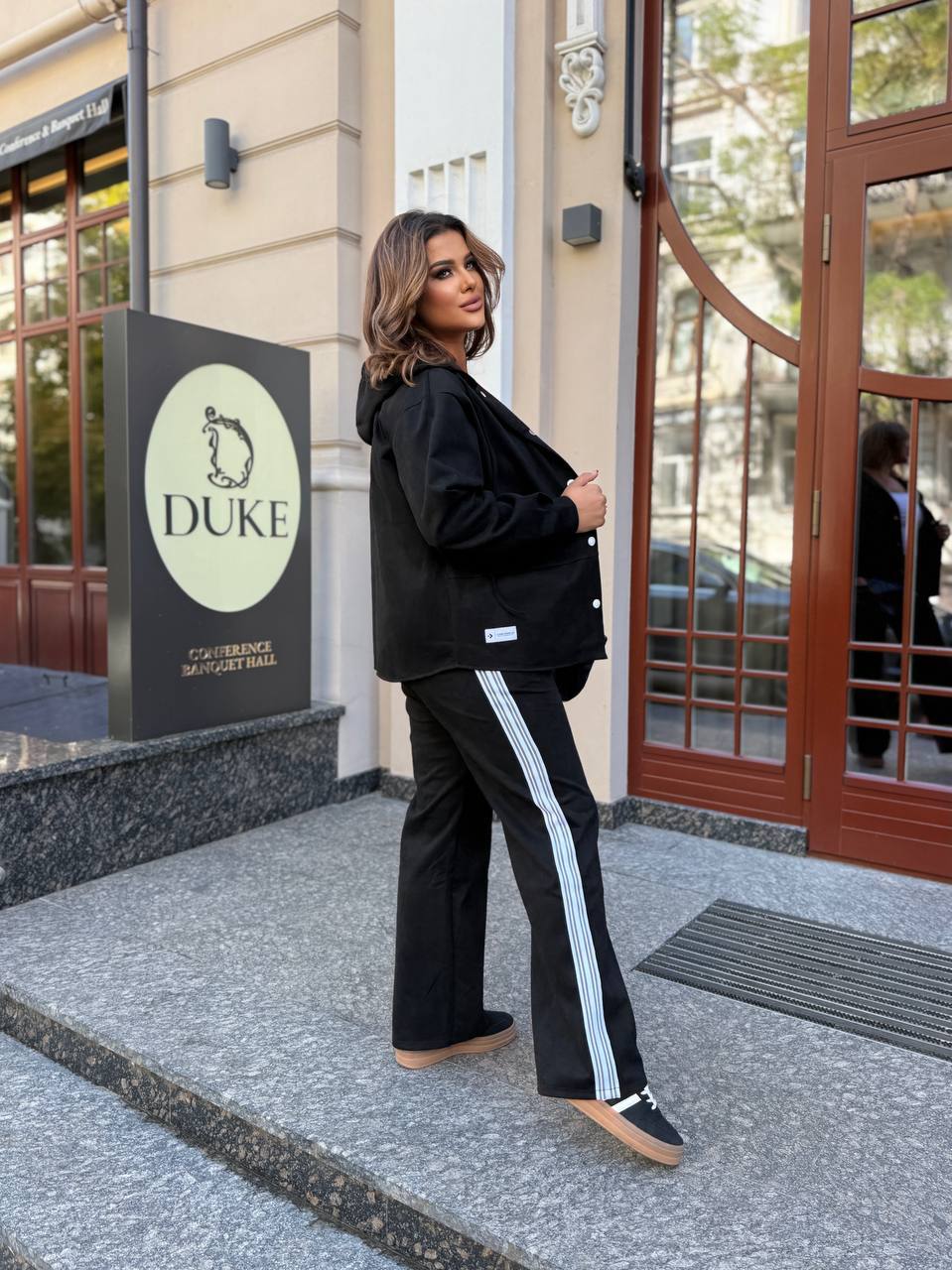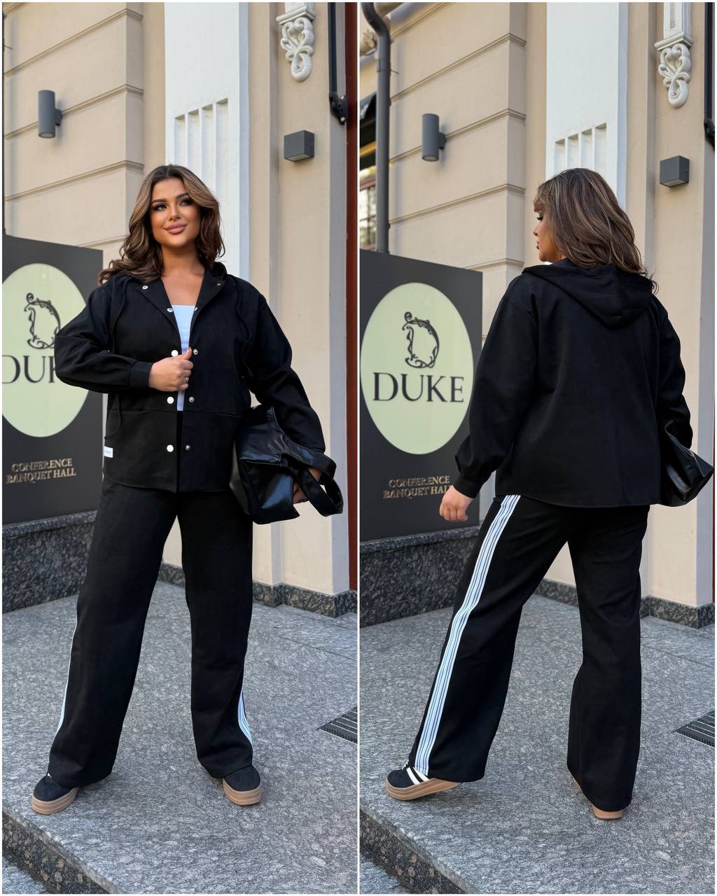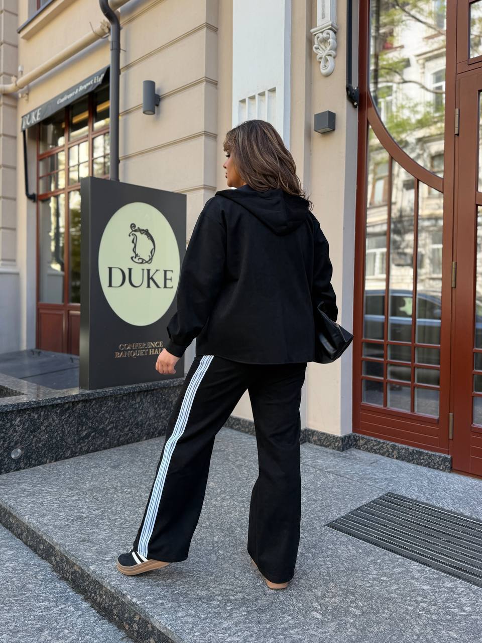 Стильный, удобный, практичный костюм из качественной ткани – это именно то, что нужно на грядущую прохладу. Кофта на застежках и с капюшоном выглядит очень стильно и придает удобству.