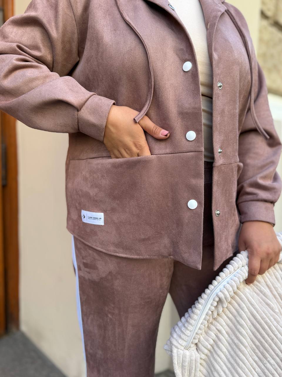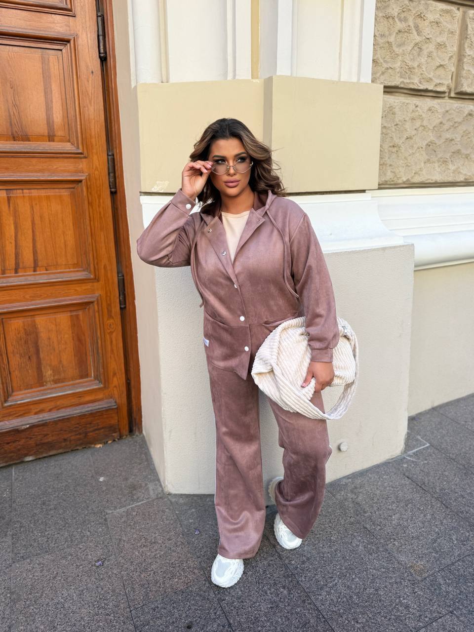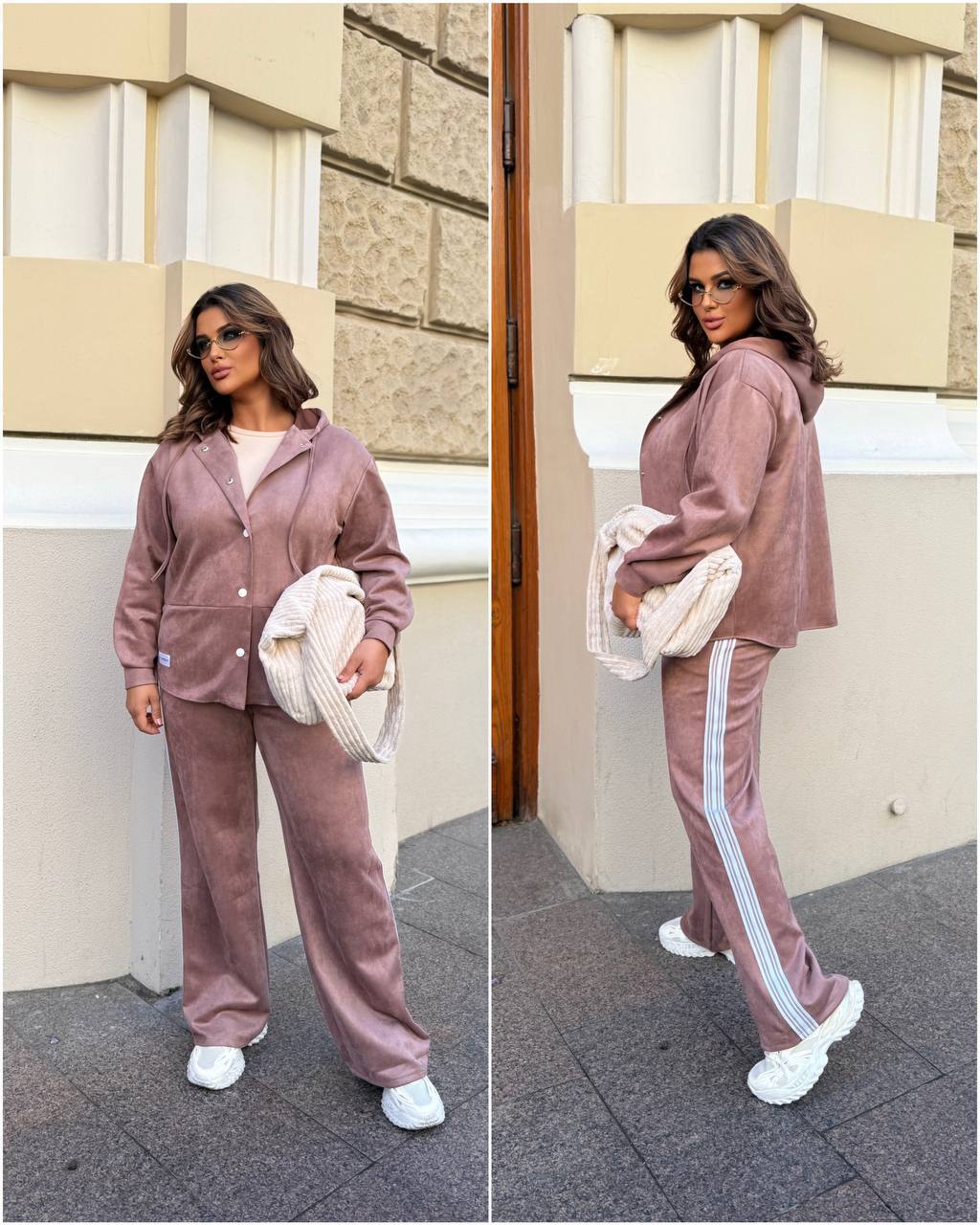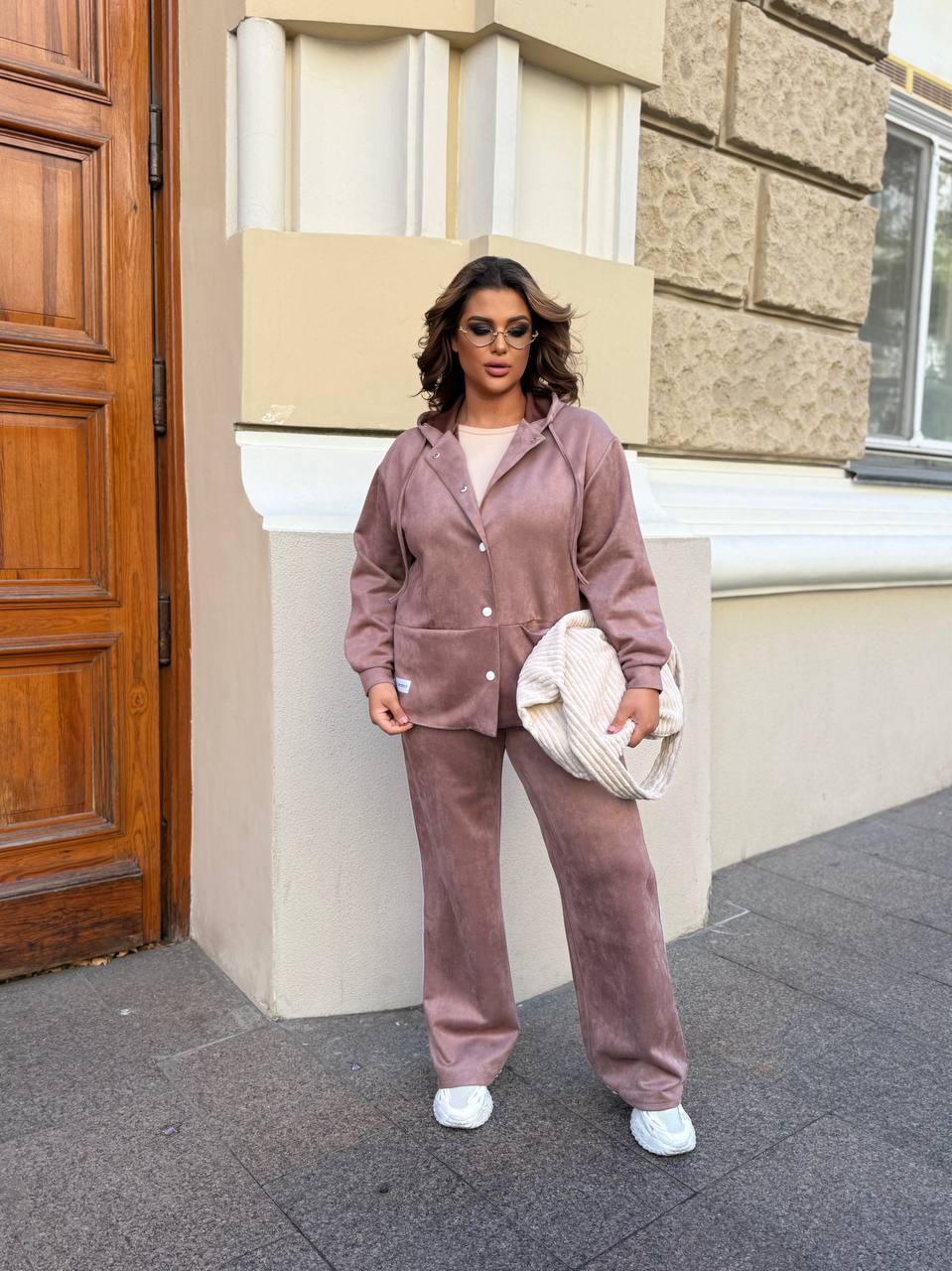 Стильный, удобный, практичный костюм из качественной ткани – это именно то, что нужно на грядущую прохладу. Кофта на застежках и с капюшоном выглядит очень стильно и придает удобству.