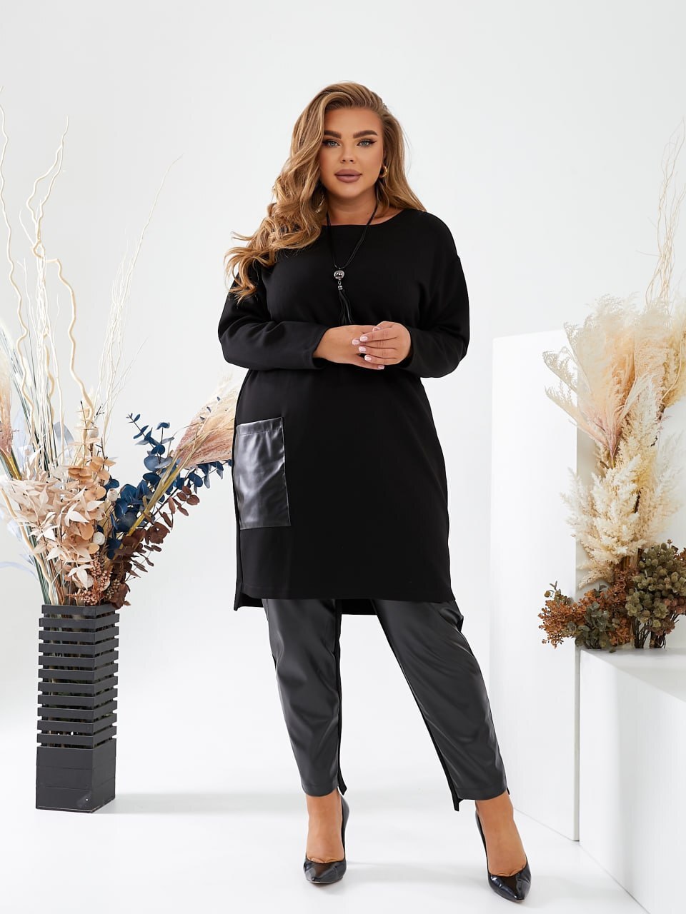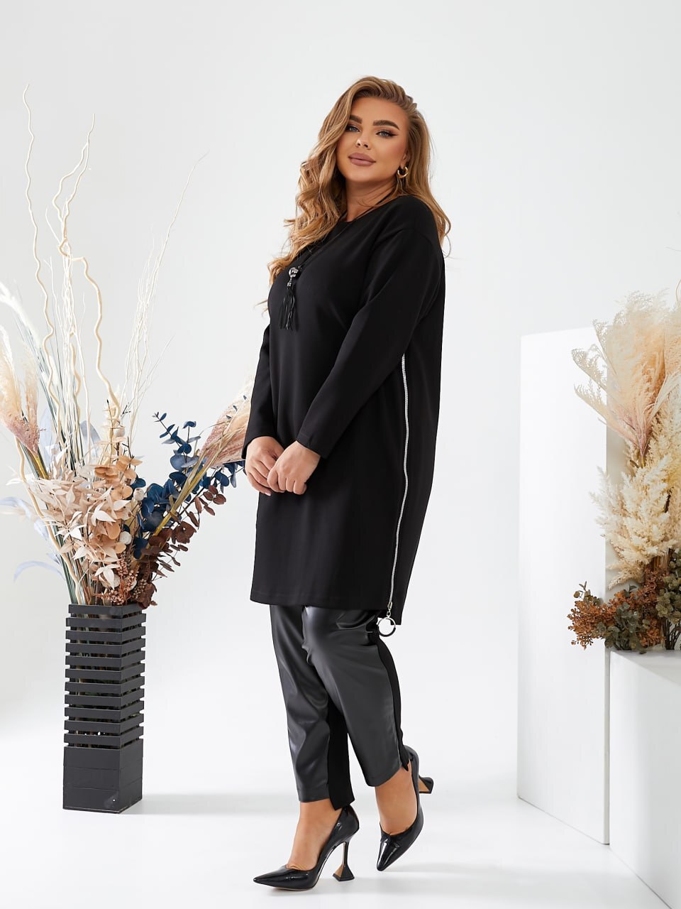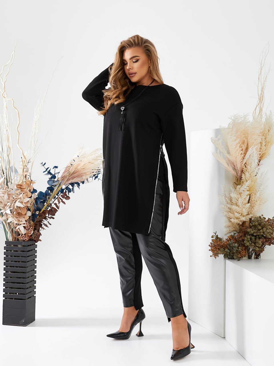 ТУНИКА СВОБОДНОГО КРОЯ С ДЛИННЫМ РУКАВОМ, СТОРОНЫ ВШИТАЯ ДЕКОРАТИВНАЯ ЗМЕЙКА. БРЮКИ НА РЕЗИНКЕ