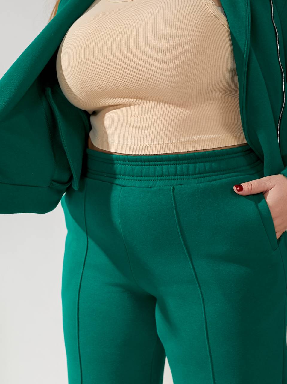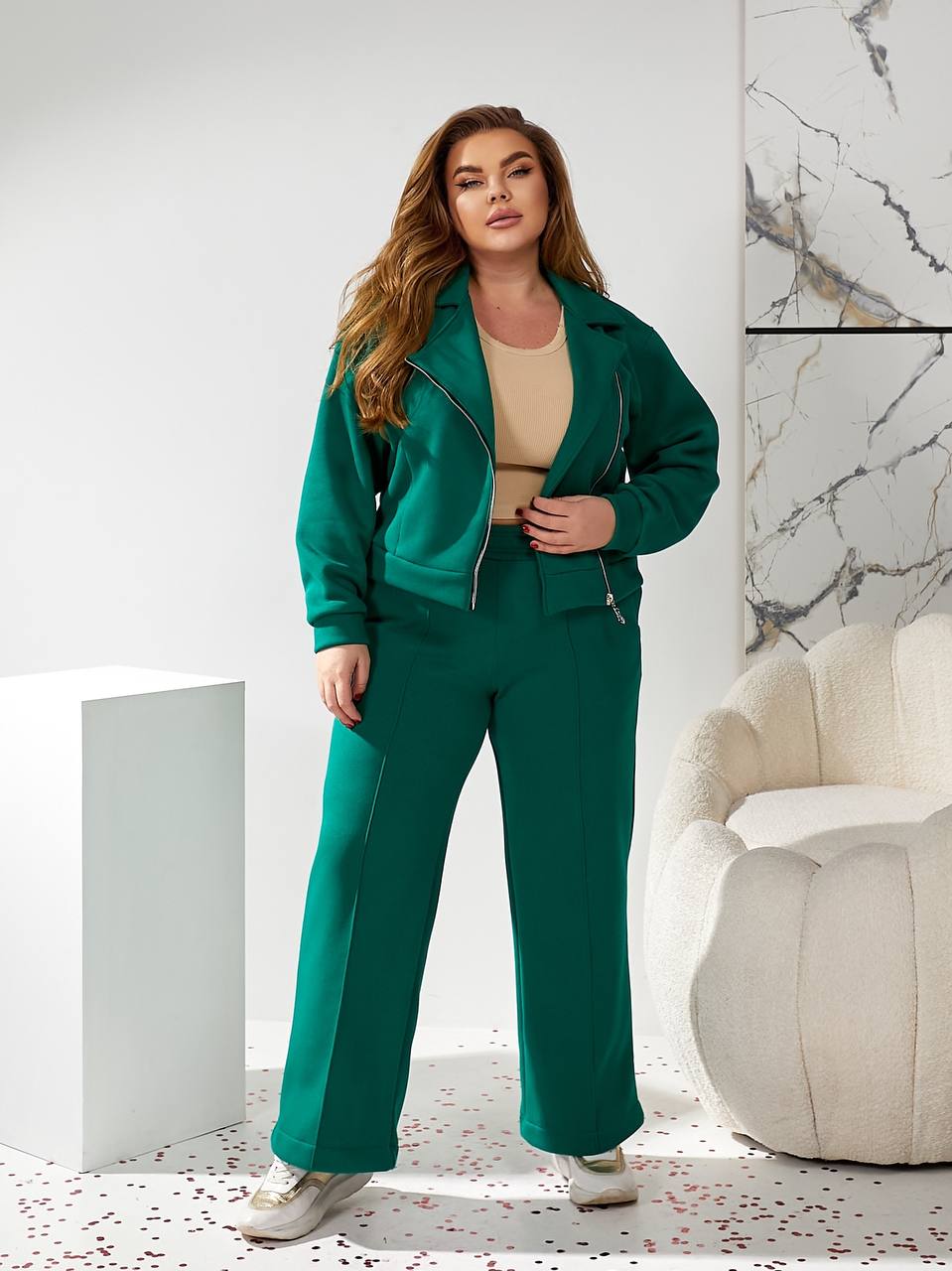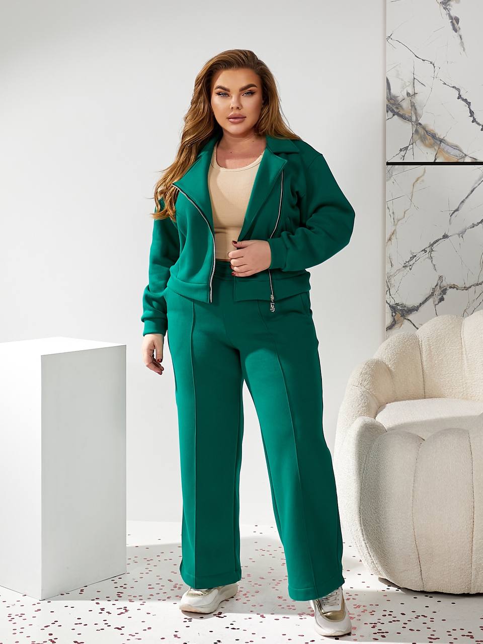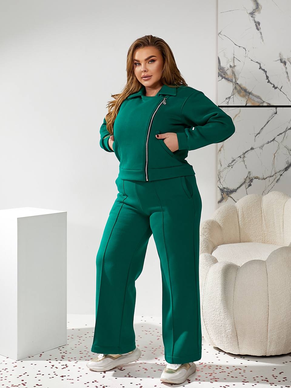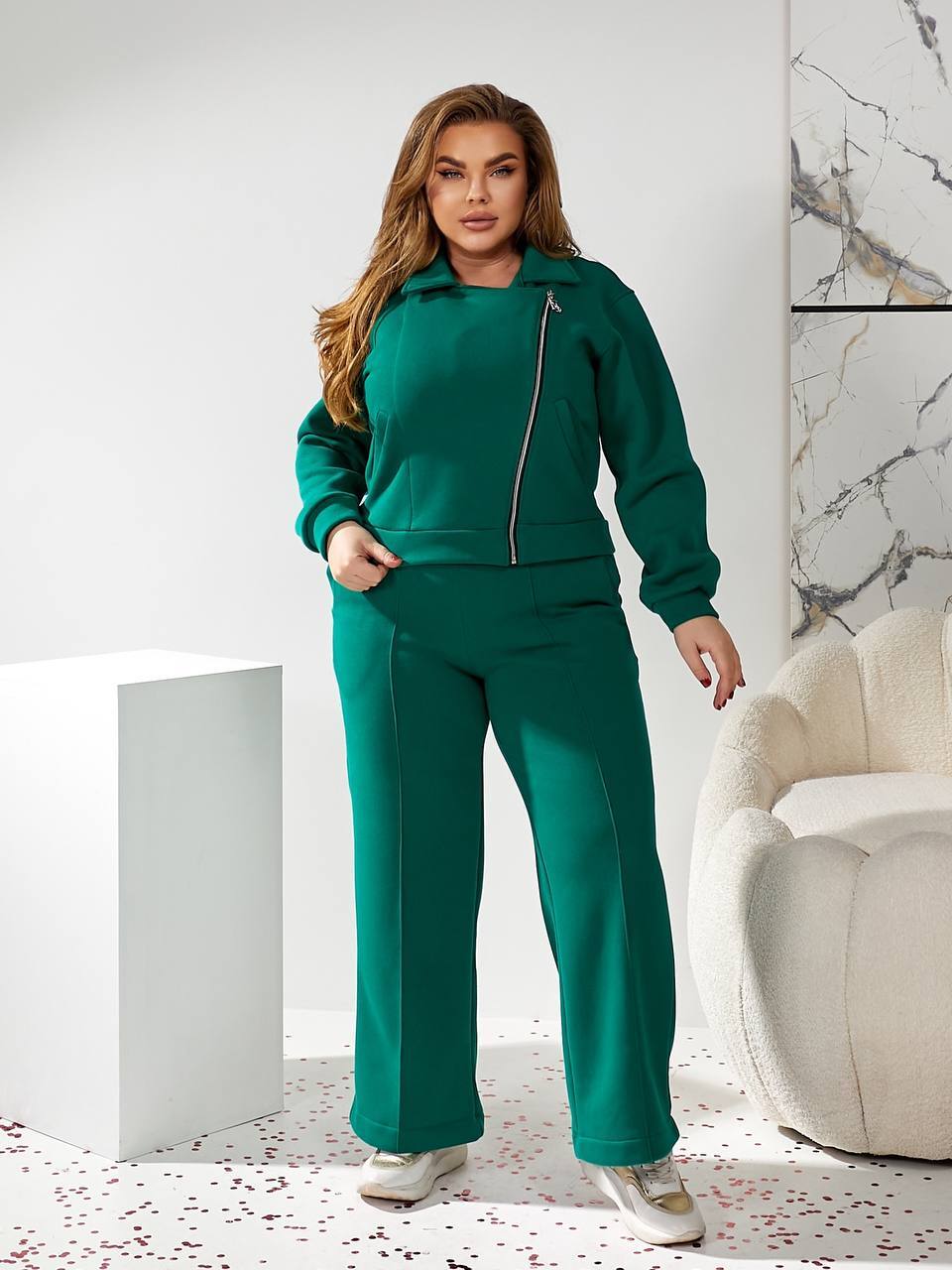 Теплый и удобный костюм, кофта косуха на молнии, с карманами. Брюки прямые с карманами, пояс на резинке.