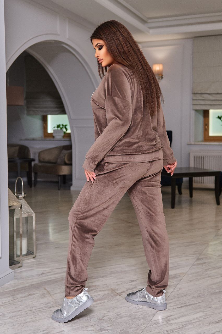 Дополнительные характеристики: Хороший и качественный костюм. Велюр средней толщины, сезон осень-весна. Кофточка с приспущенными рукавами, свободного покроя, костюм декорированный стразами высокого качества и жемчужинами, на рукавах и по низу кофты есть манжет, кофточка без карманов. Брюки также оформлены со стразами, с манжетами по низу, посадка выше средней, удобный шов сиденья, пояс на резинке- просроченный на специальном оборудовании для хорошей фиксации резинки, не будет извращаться, с карманами.