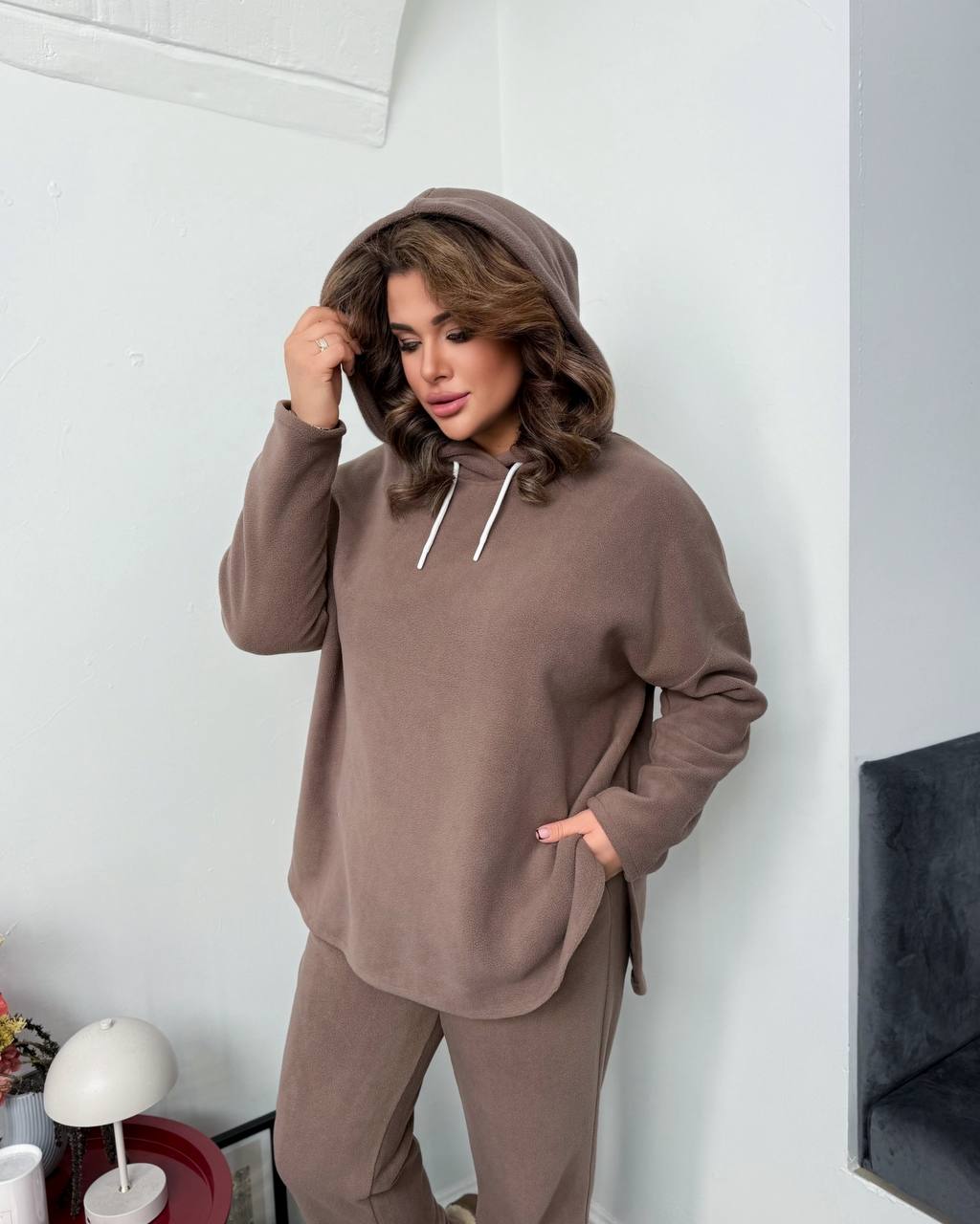 Стильный, теплый и невероятно комфортный костюм из премиального Полар Флиса. Этот материал известен своей мягкостью, легкостью и высокой теплоизоляцией – он удерживает тепло, но при этом позволяет коже дышать.