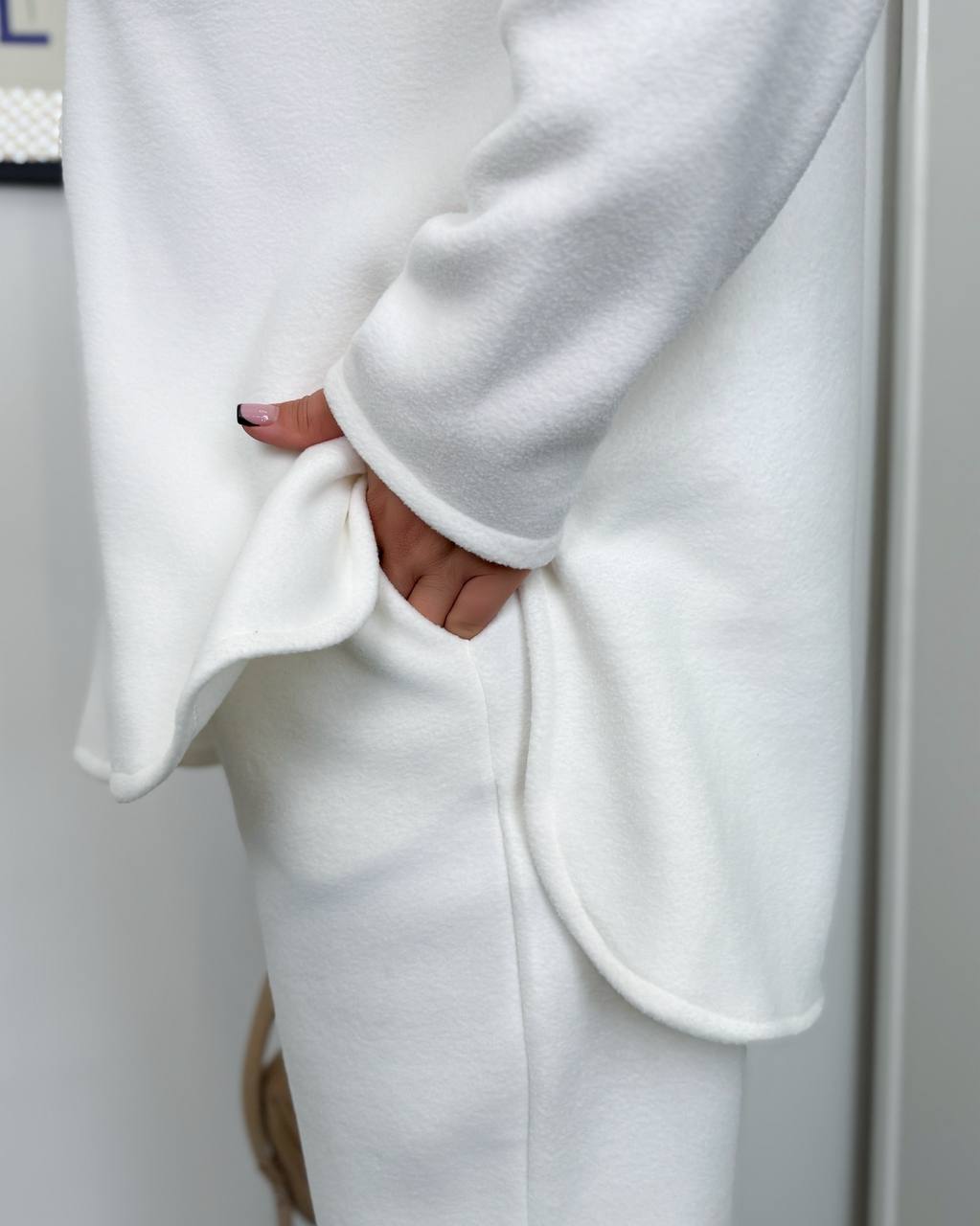 Стильный, теплый и невероятно комфортный костюм из премиального Полар Флиса. Этот материал известен своей мягкостью, легкостью и высокой теплоизоляцией – он удерживает тепло, но при этом позволяет коже дышать.