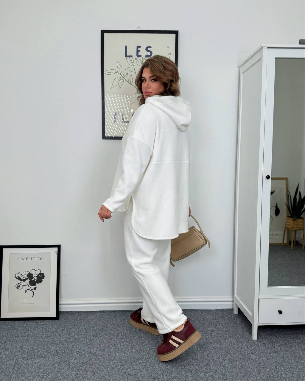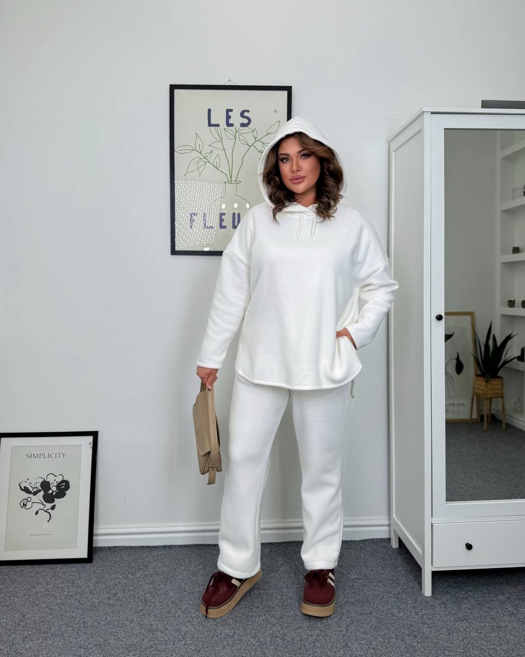 Худи имеет свободный оверсайз крой, усиленный капюшон и стильные разрезы по бокам, что делает силуэт более аккуратным и современным. Брюки – прямого силуэта, комфортные, не облегающие, идеально садятся на фигуру батал.