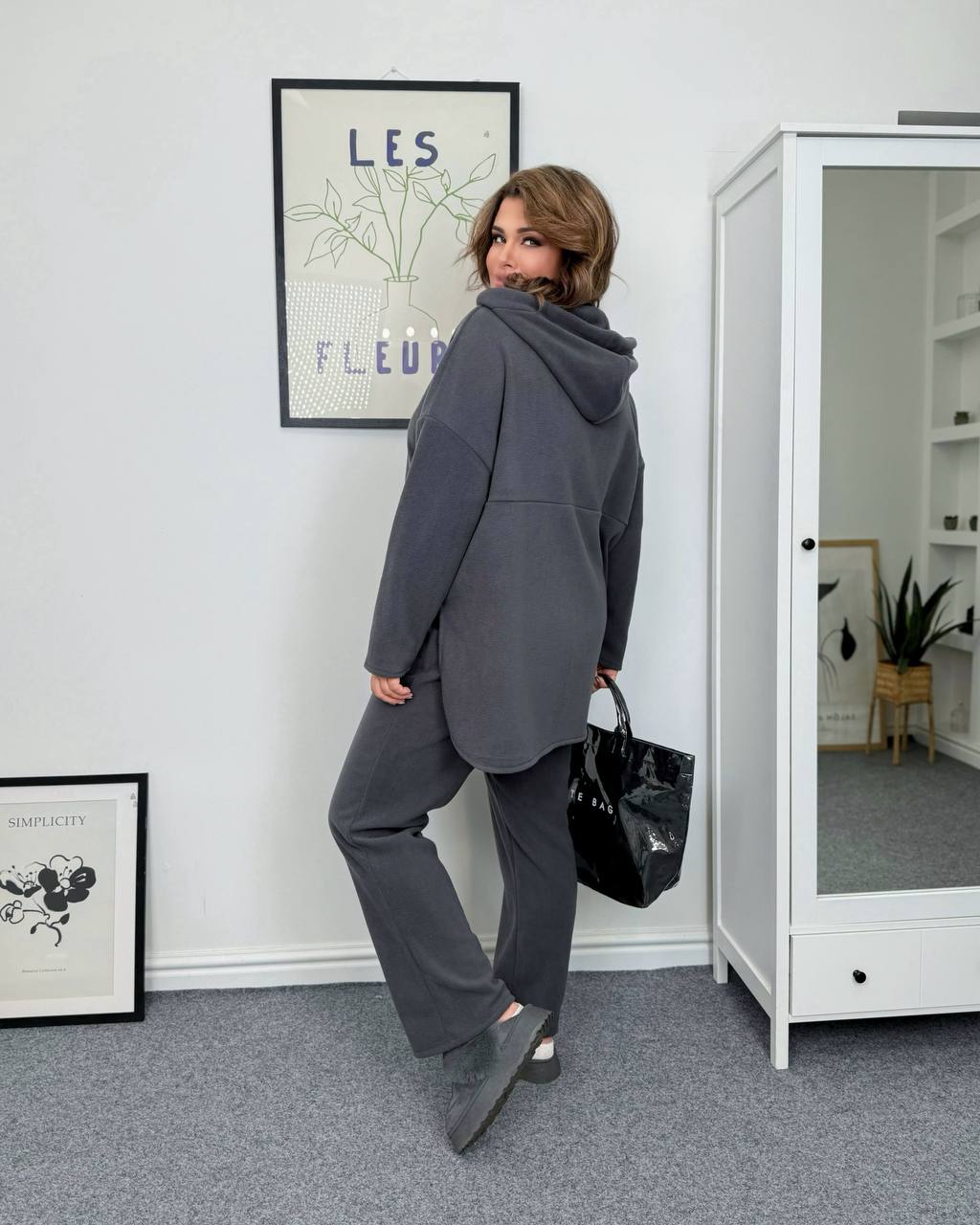Худи имеет свободный оверсайз крой, усиленный капюшон и стильные разрезы по бокам, что делает силуэт более аккуратным и современным. Брюки – прямого силуэта, комфортные, не облегающие, идеально садятся на фигуру батал.