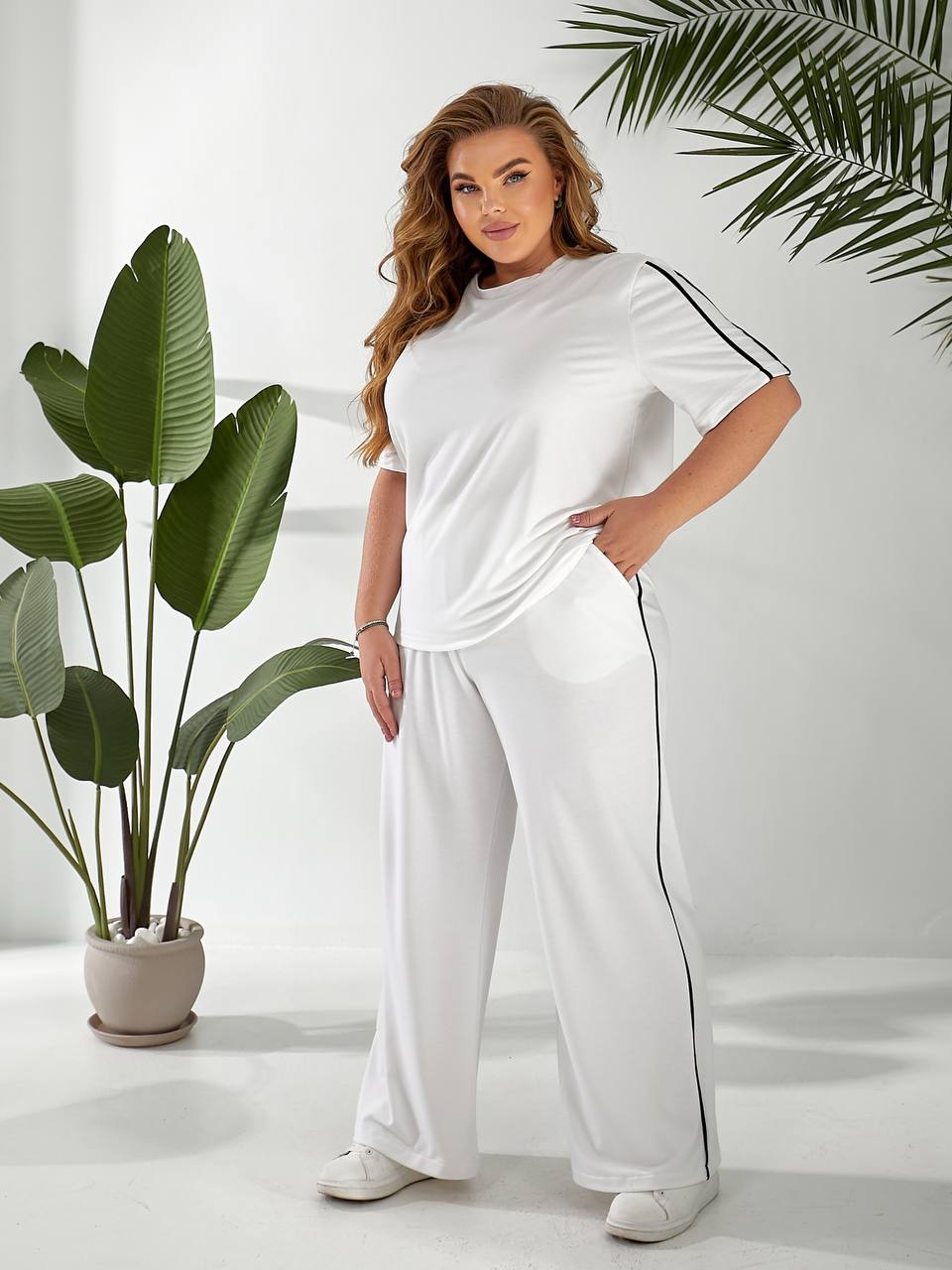 Стильные брюки свободного кроя, с лентой, высокая посадка, с карманами.