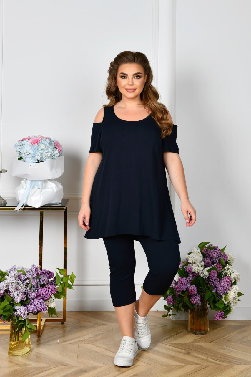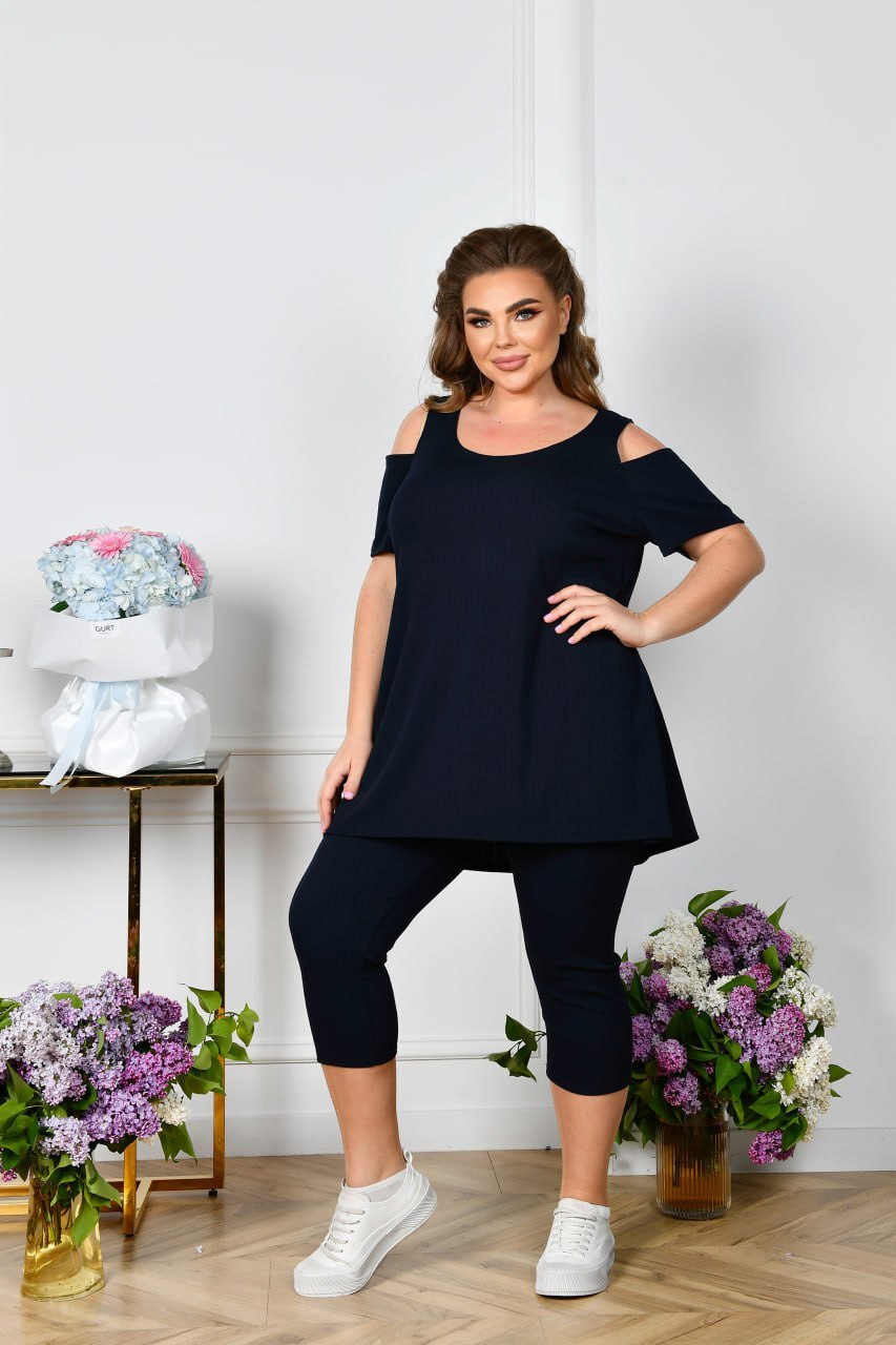 Стильный повседневный костюм для прогулок из трикотажа в рубчик (высокая растяжимость).