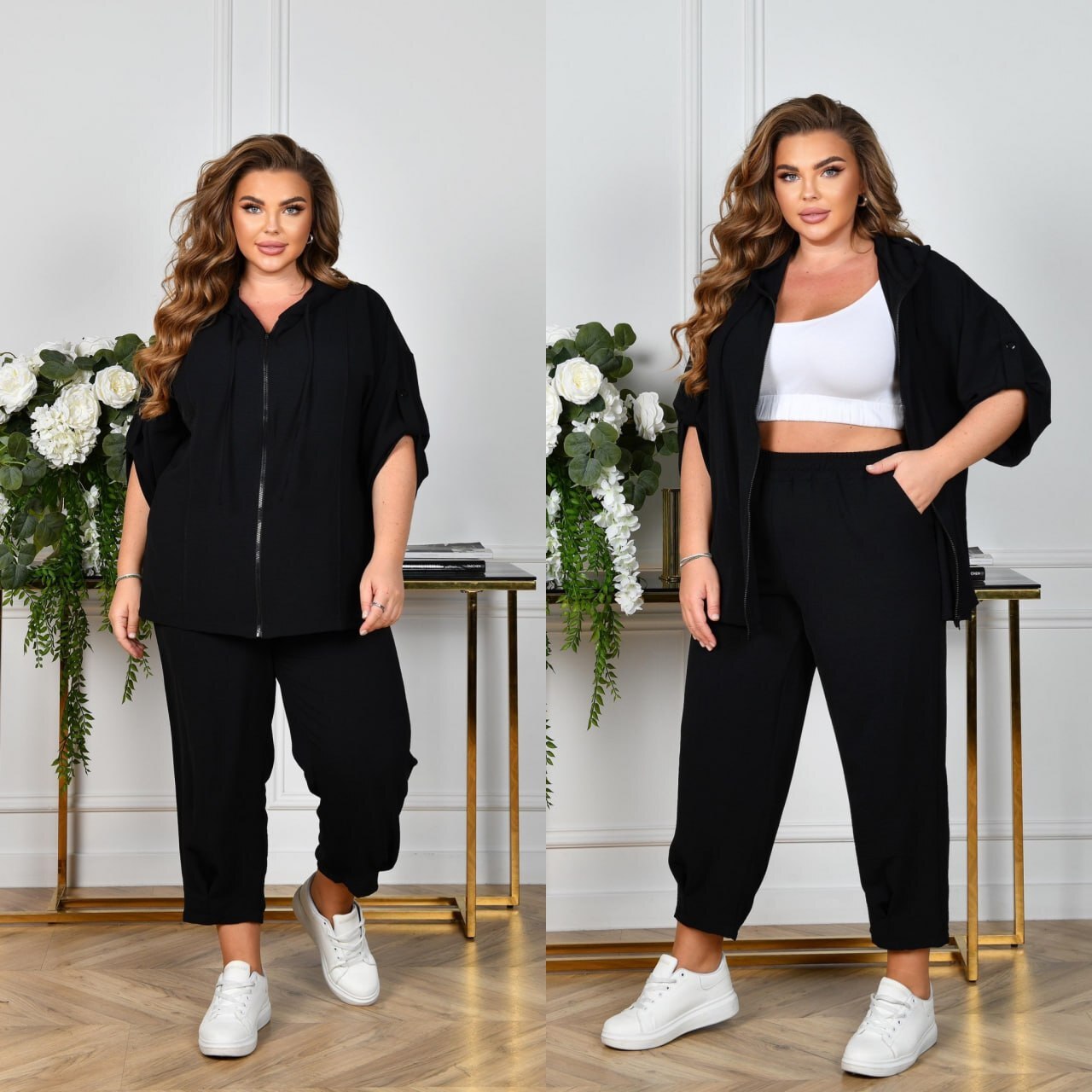Мегастильный летний костюм из жатого крепа (ткань не мнется, минимальная растяжимость).