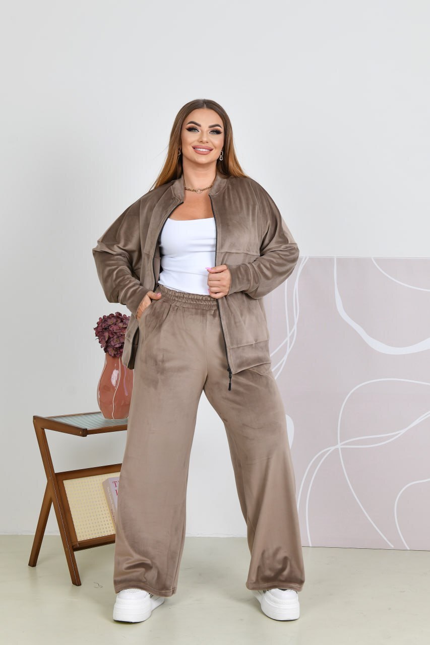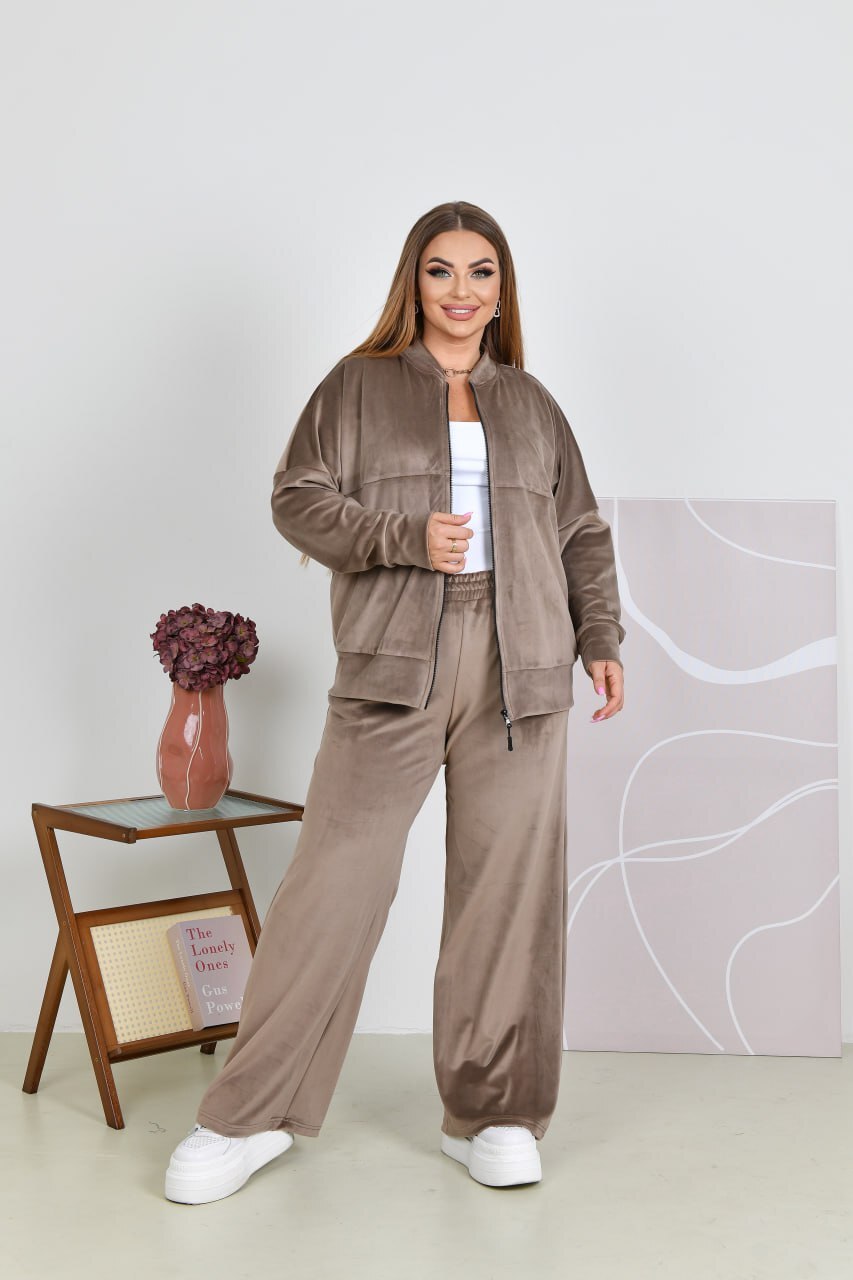 Стиль и комфорт одновременно совмещены в этом костюме. Он изготовлен из качественного велюра (трикотаж очень хорошо тянется).