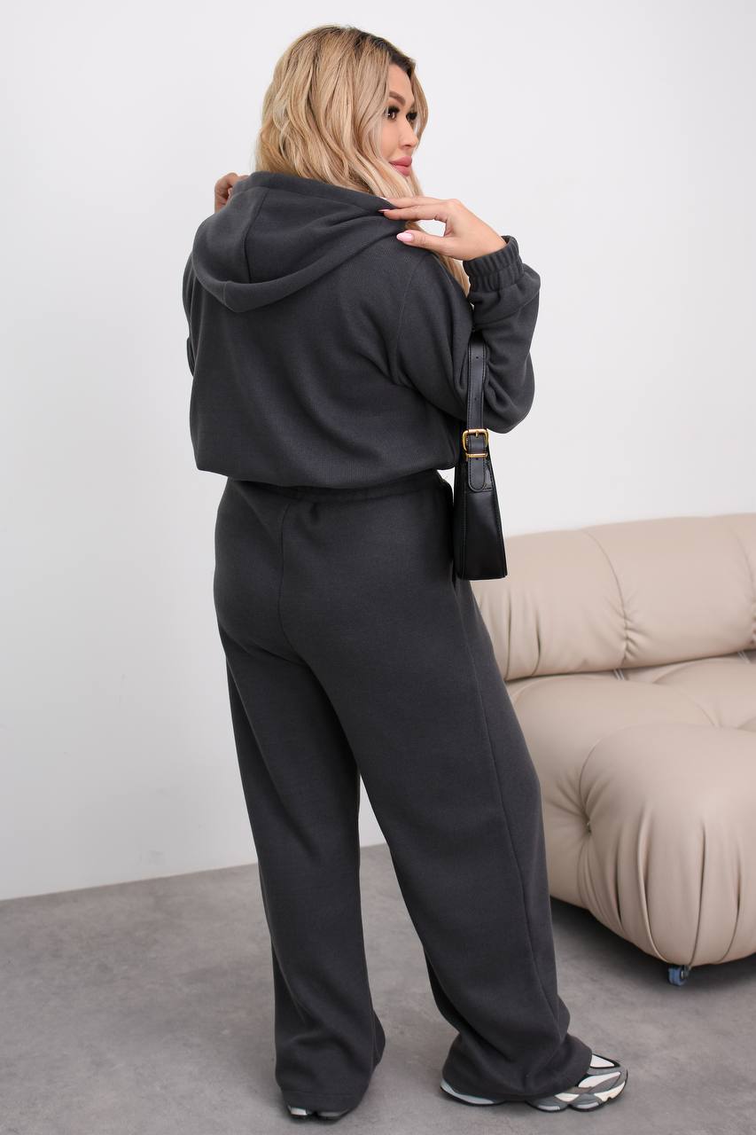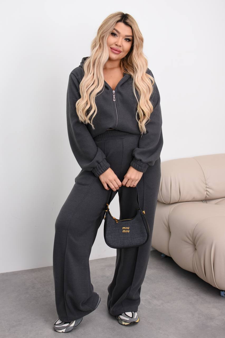 Костюм с капюшоном на молнии, штанишки палаццо высокая посадка. Идеальный вариант на каждый день в холодное время года.