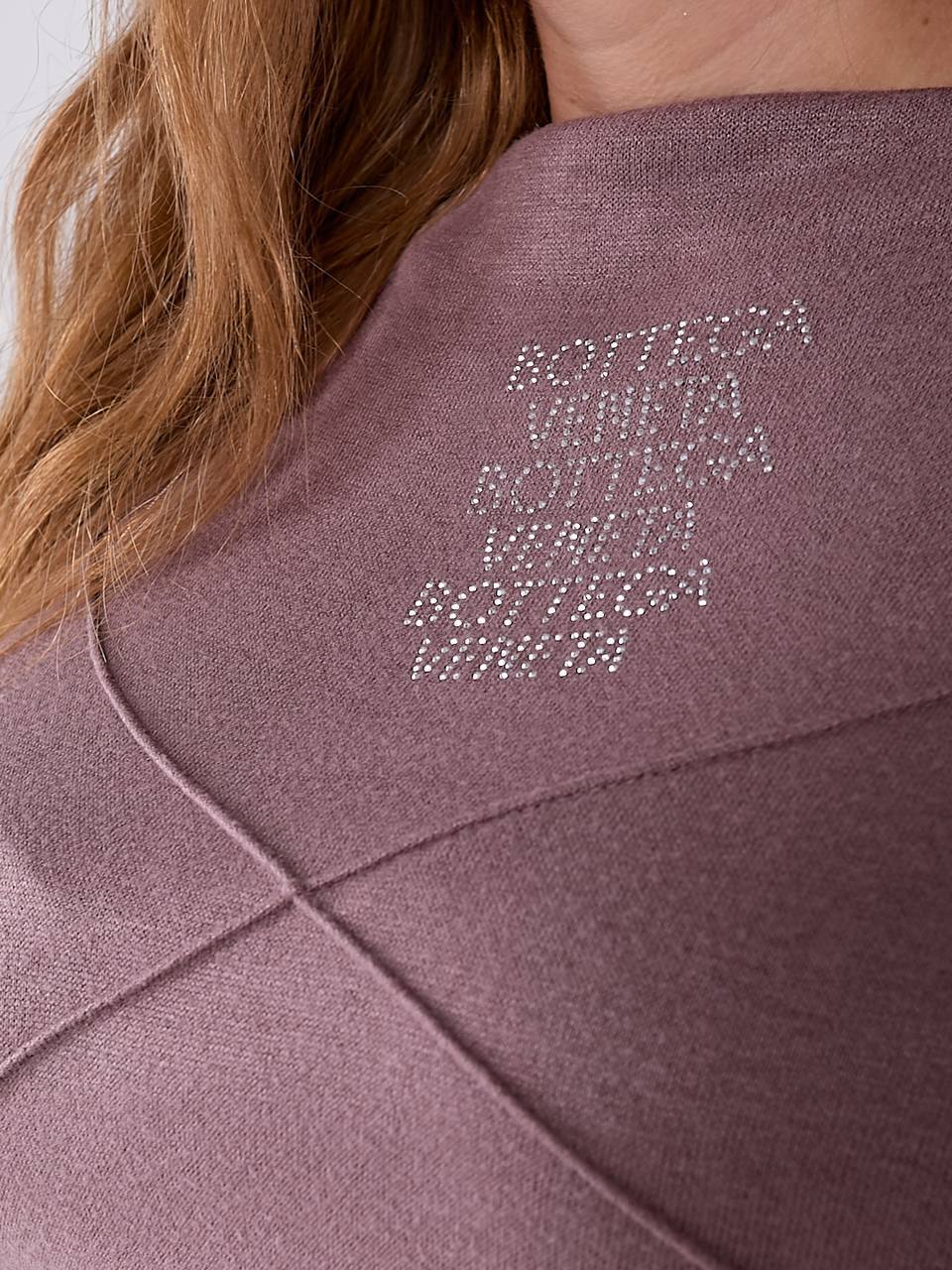Кофта свободного кроя с хорошими пересрочками, горло декорировано камнями.