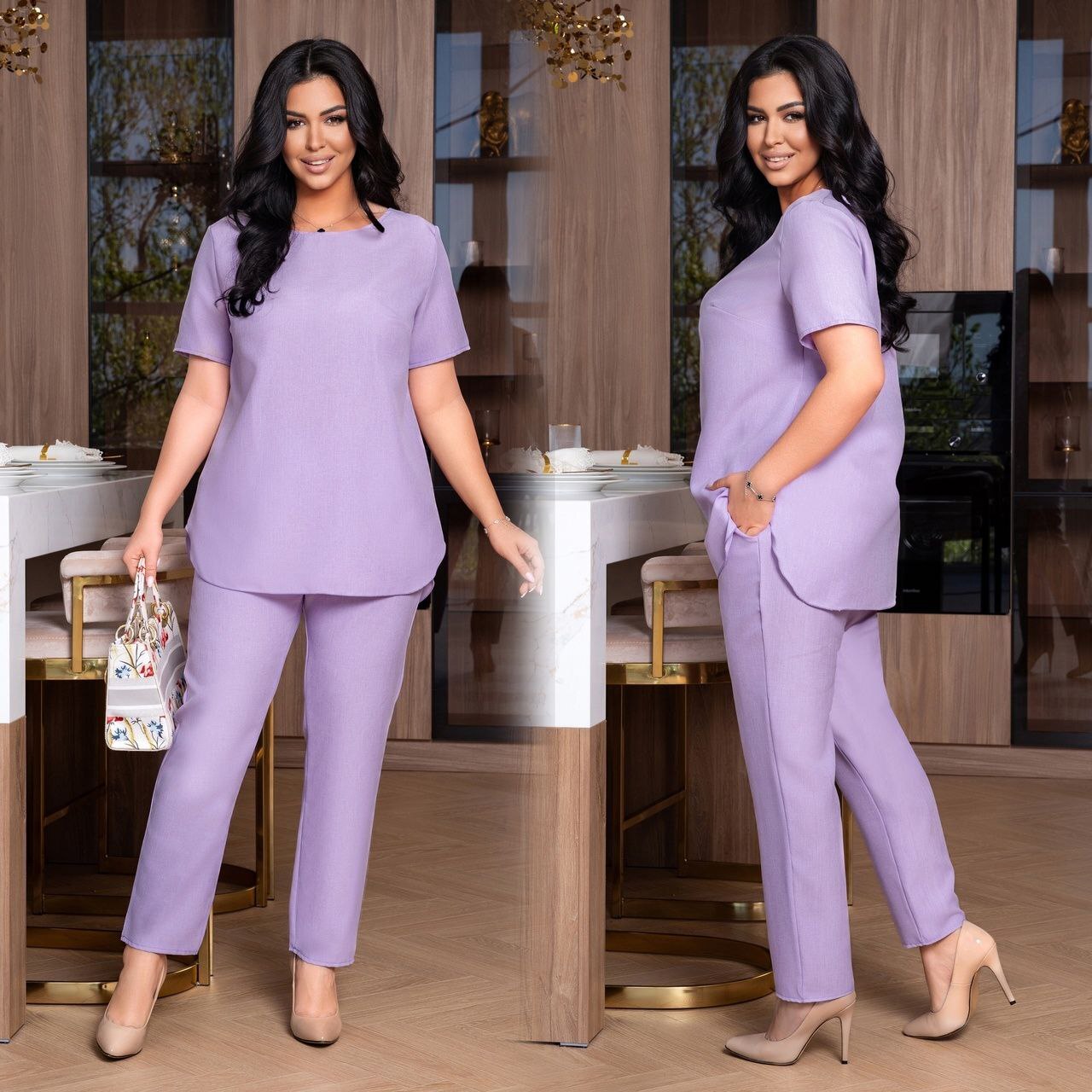 Практичный стильный костюм, брюки прямого покроя, с боковыми карманами, пояс на резинке. Кофта с боковыми разрезами, прямого покроя. Ткань хорошего качества