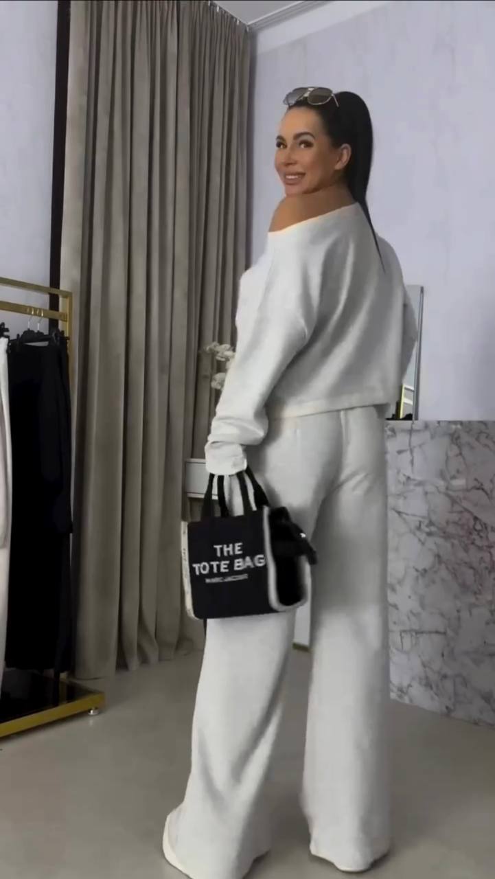 Кофта прямая, широкий рукав, брюки с карманами, в поясе резинка.