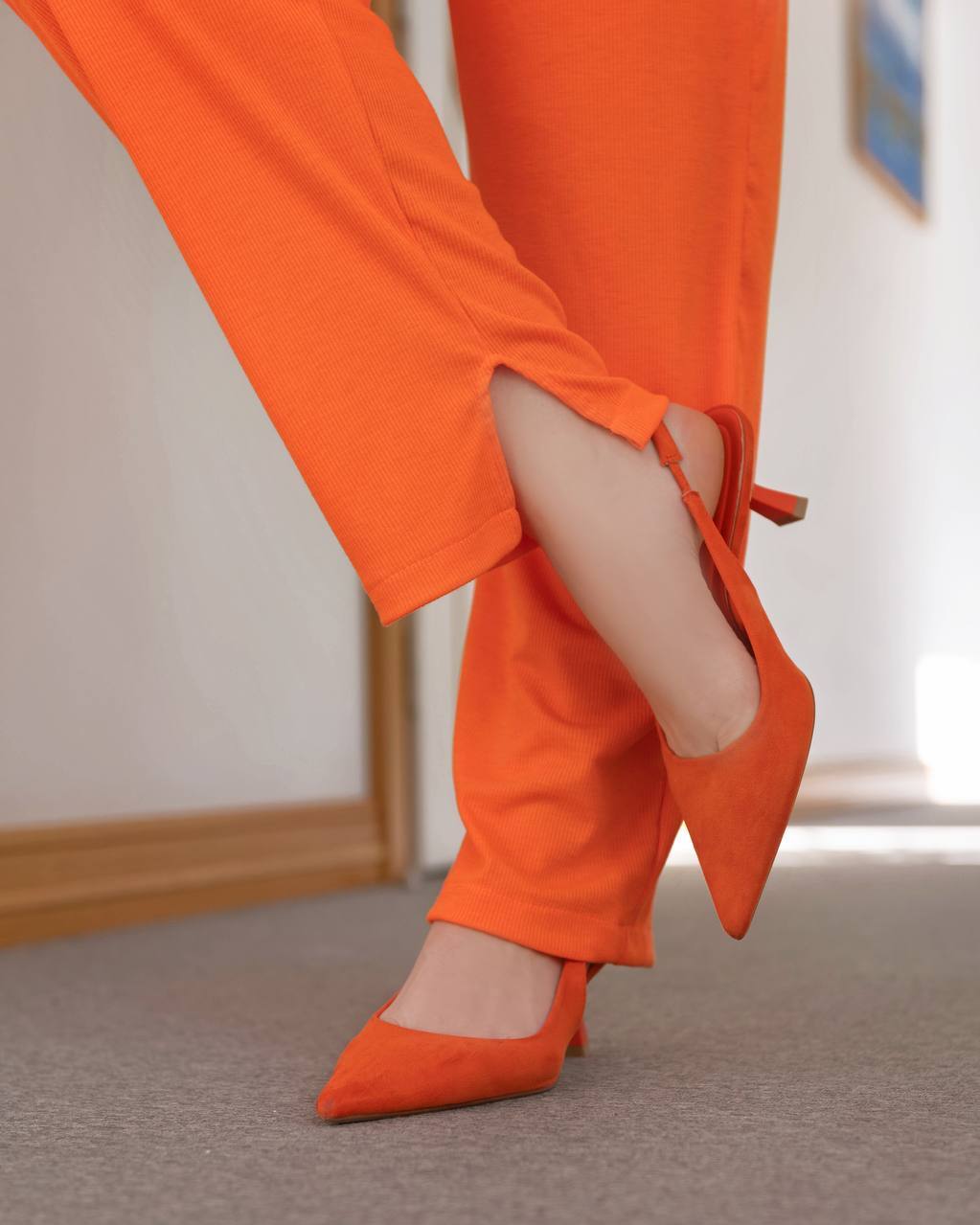 Костюм-двойка: кофта с длинным рукавом, по бокам разрезы; штаны на высокой посадке, по бокам карманы, по внутреннему шву разрезы