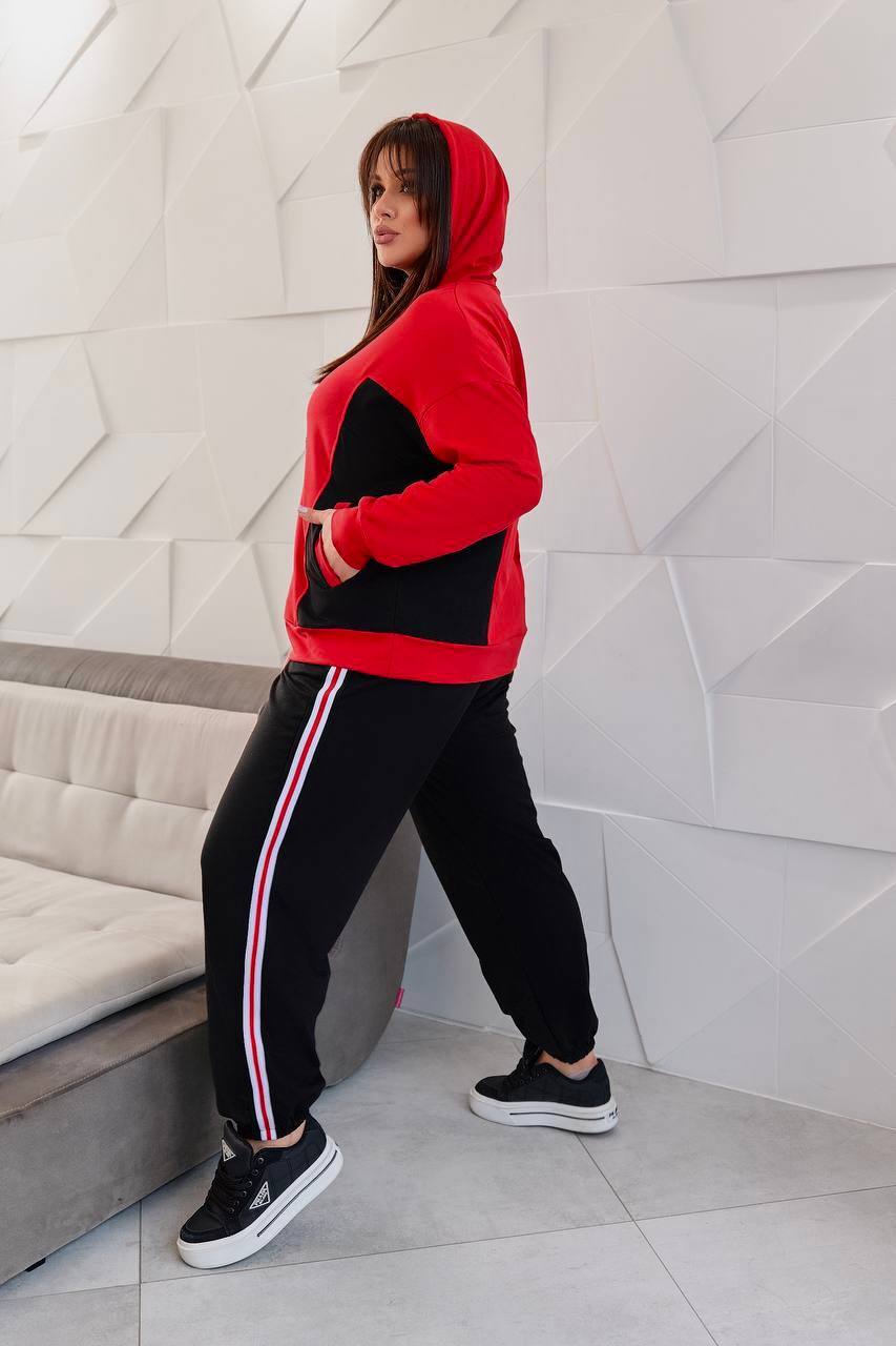 Брюки высокая посадка, свободного кроя. Имеют эластичный пояс, обеспечивающий отличную посадку и комфорт при движении, по низу на резинке. В штанах есть карманы в боковых швах, а также по заду. На брюках стильные лампасы, которые хорошо сочетаются.
