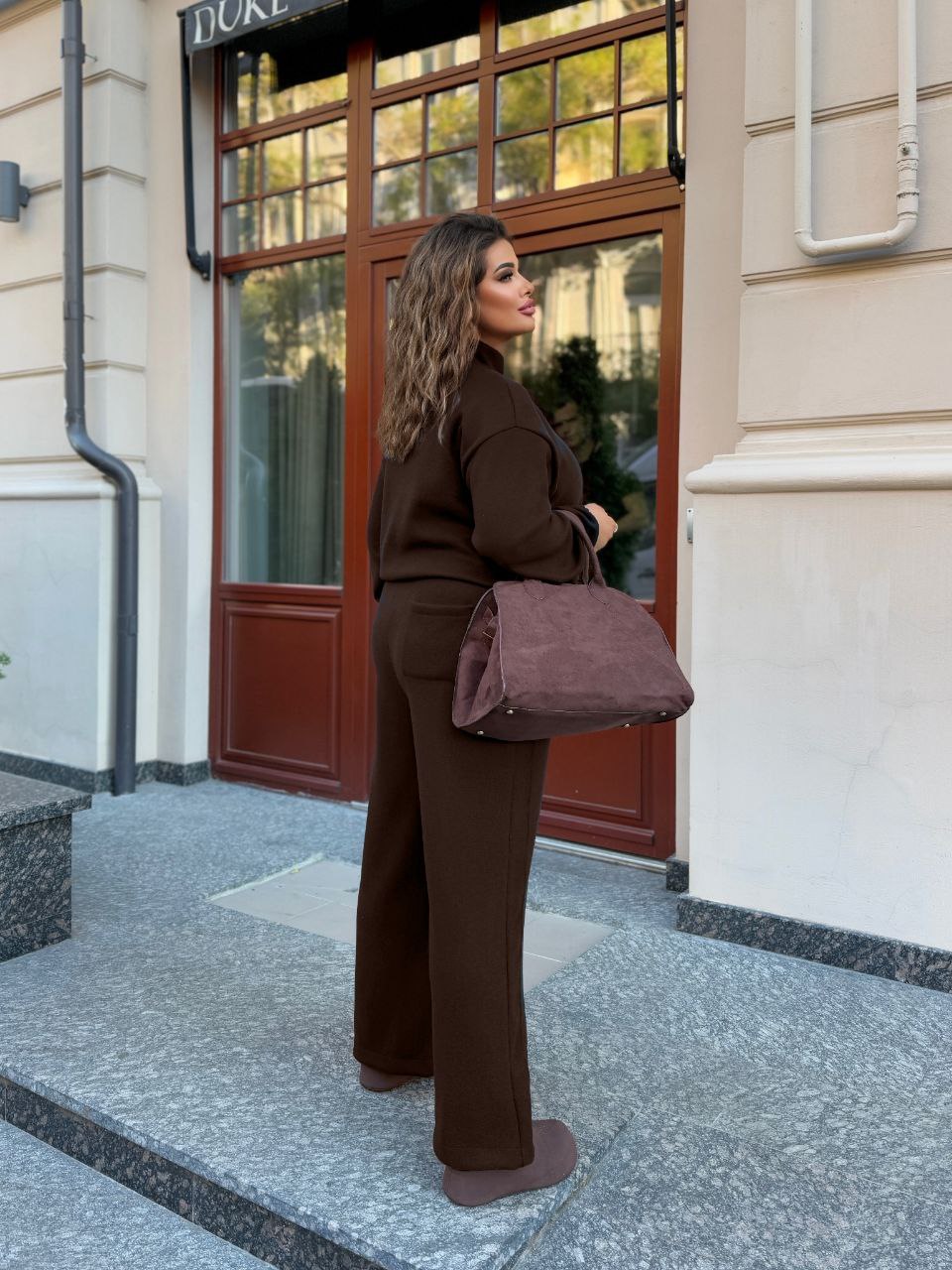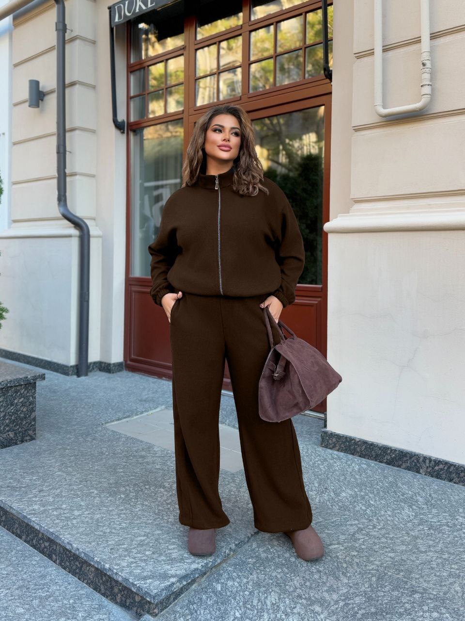 Костюм очень теплый, стильный.