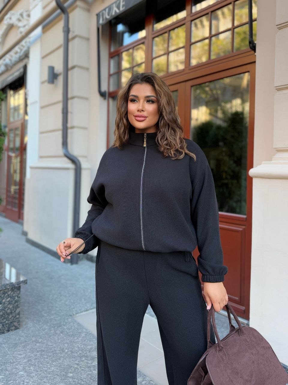 Костюм очень теплый, стильный.