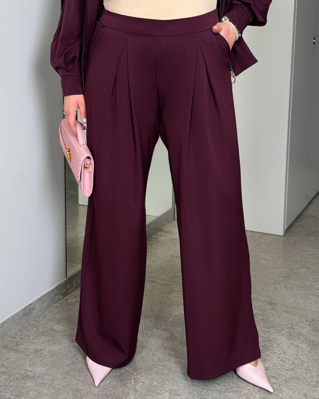 Широкие прямые, свободные брюки палаццо с высокой комфортной посадкой и мягкими складками спереди, с карманами.