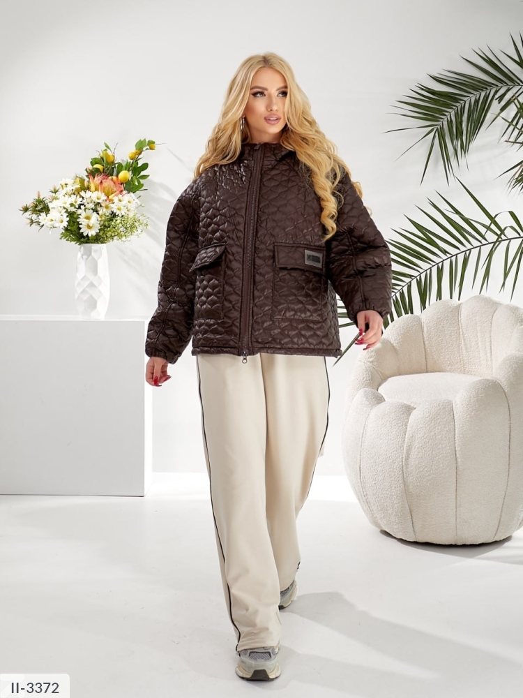 Ткань: ткань лаке выстрочка зара, премиум качества. наполнитель холофайбер 150. по низу утяжка на любые бедра. рукав реглан. карманы наложены.