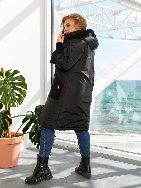 Изделие - трапеция, но низ можно затянуть на фиксаторах. Капюшон...