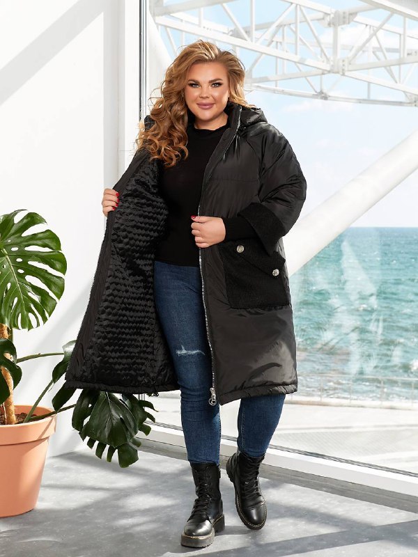 Изделие - трапеция, но низ можно затянуть на фиксаторах. Капюшон съемный