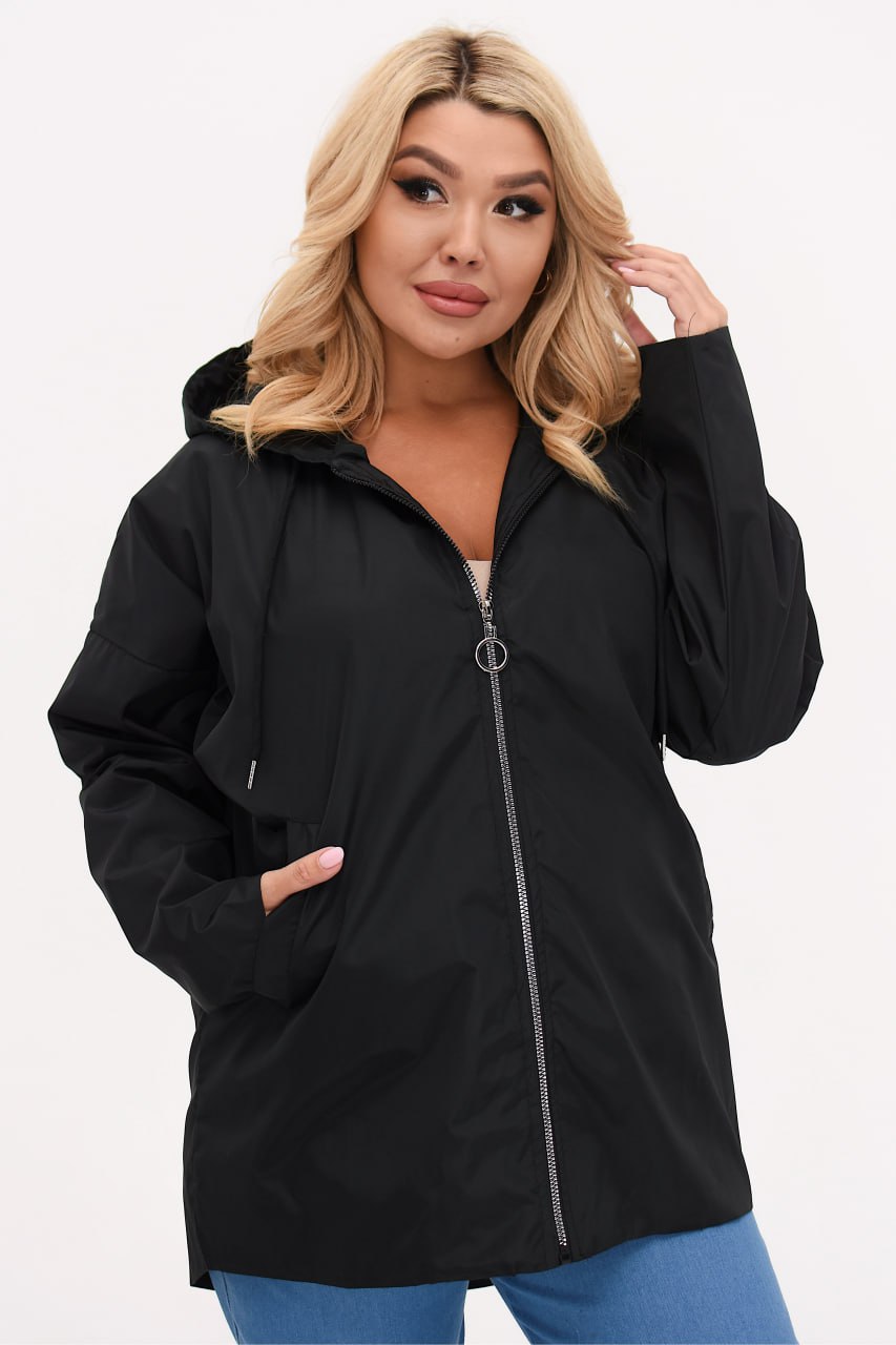 Ветровка из плащевки Эмми на подкладке дополнена прорезными карманами, имеет рукав реглан, застегивается на молнию по всей длине. Рост модели – 171 см., параметры модели на фото ОГ-ОТ-ОБ: 108-80-112, одетая в р.48-50