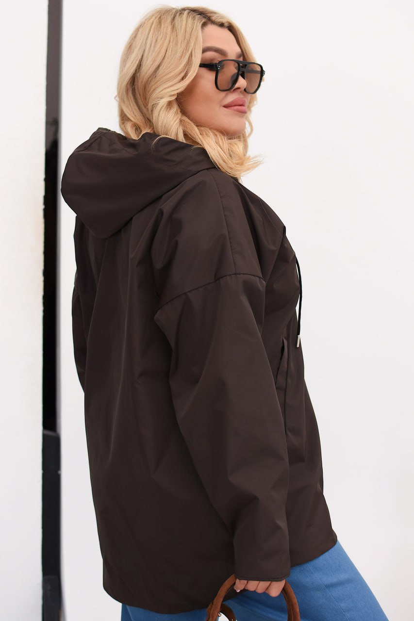 Ветровка из плащевки Эмми на подкладке дополнена прорезными карманами, имеет рукав реглан, застегивается на молнию по всей длине. Рост модели – 171 см., параметры модели на фото ОГ-ОТ-ОБ: 108-80-112, одетая в р.48-50