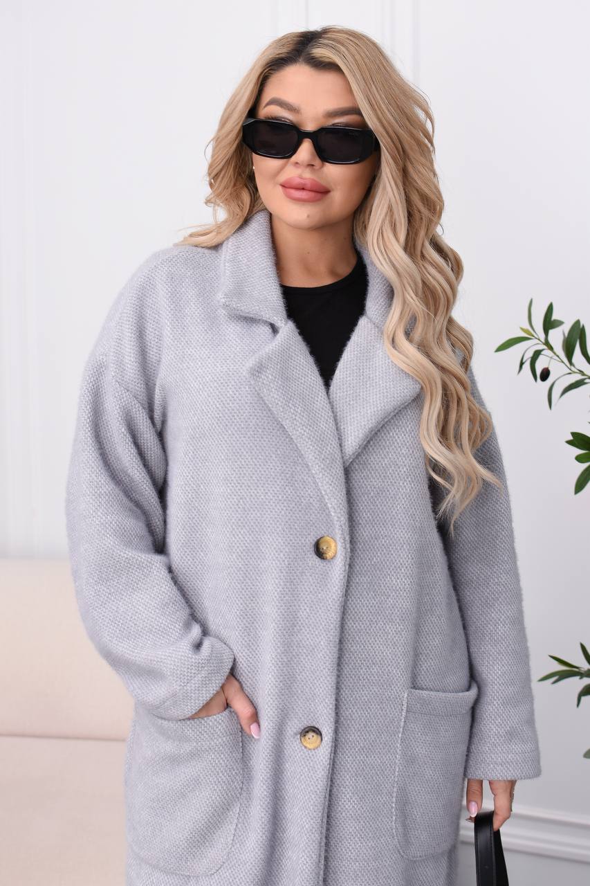 Изготовлен из качественной дорогой ангоры альпака, не колется и прекрасно держит форму. кардиган стильный, комфортабельный. имеет рабочие накладные карманы и рабочие две пуговицы.