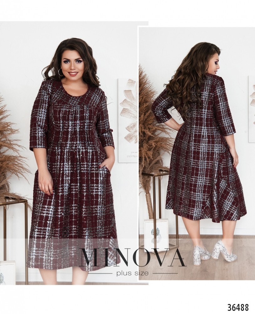 Мягкое повседневное платье батал из свежей коллекции minova представлено в каталоге в нескольких вариантах: в крупную клеточку и в однотонной расцветке. платье а-силуэта, на груди присобрано рядом продольных вытачек, подол расклешён, длиной приблизительно до колена. на груди небольшие вытачки. по бокам – врезные карманы, застёжек нет. платье с нитями люрекса, которые делают образ более нарядным, особенно при ярком освещении. рукава длиной, без манжет. прекрасный выбор для ношения дома или в неформальной обстановке, с любой удобной обувью на каблуке или плоской подошве.