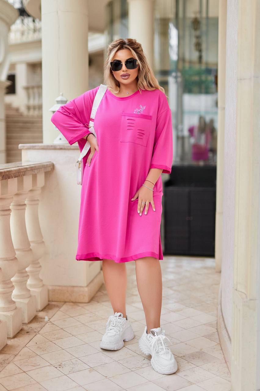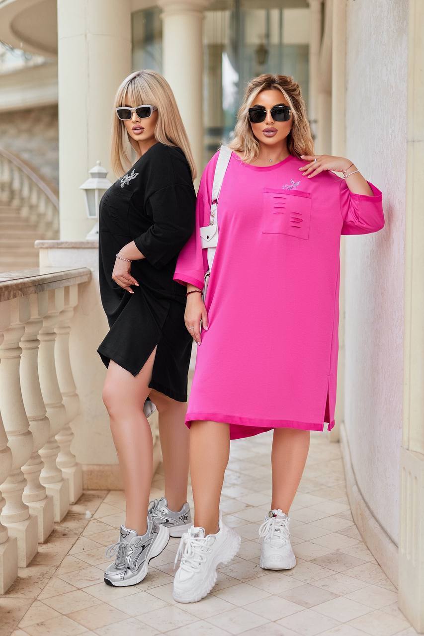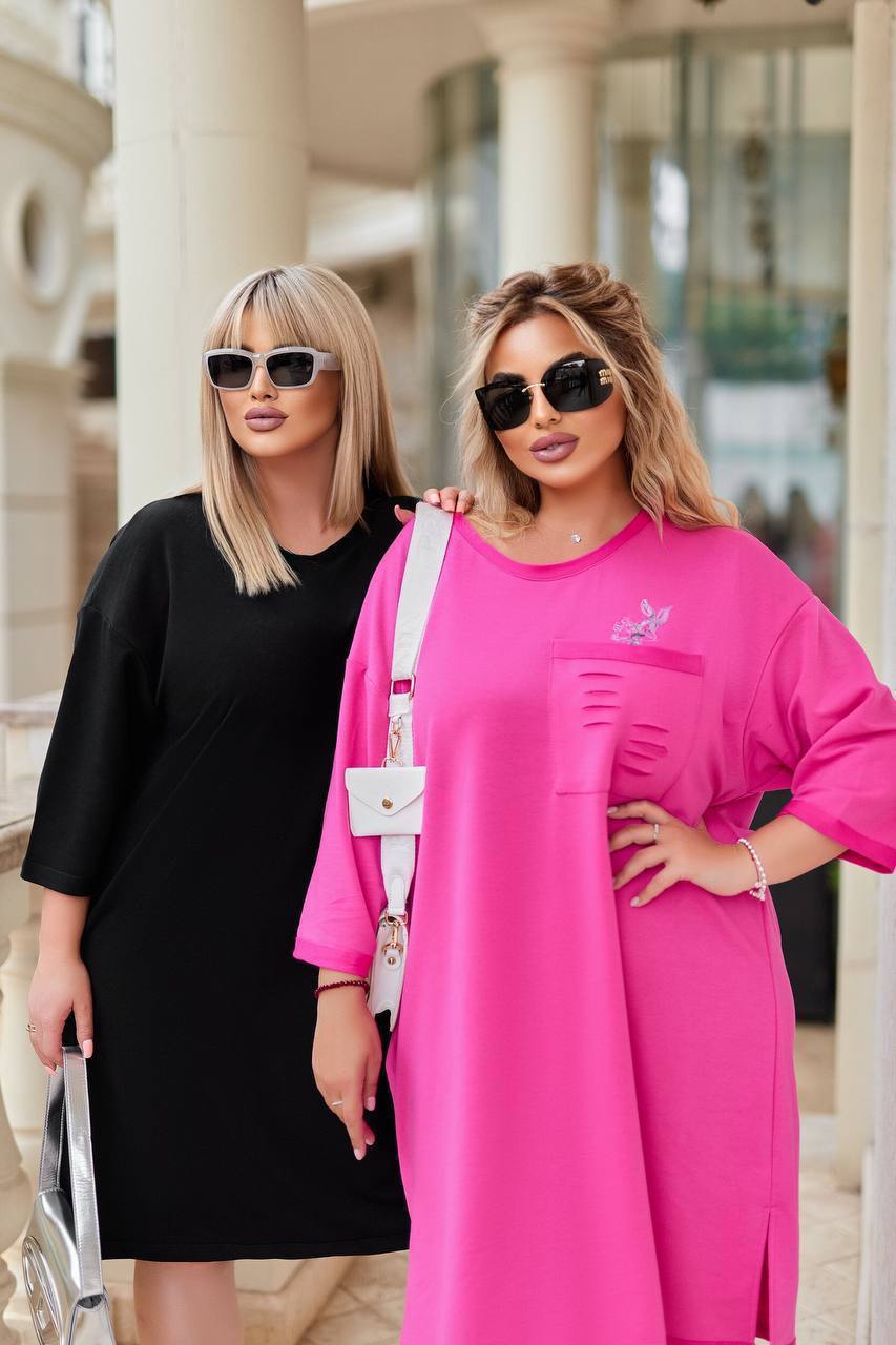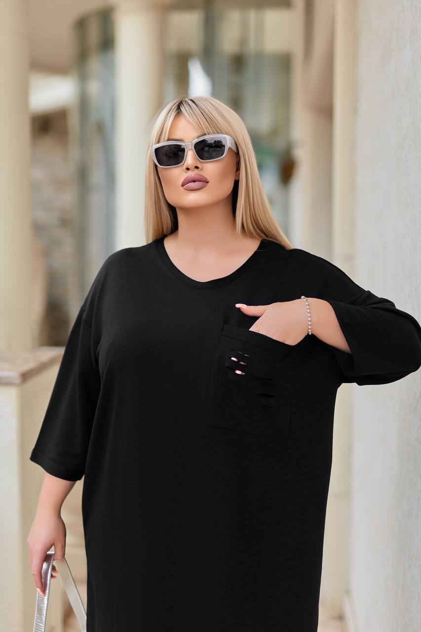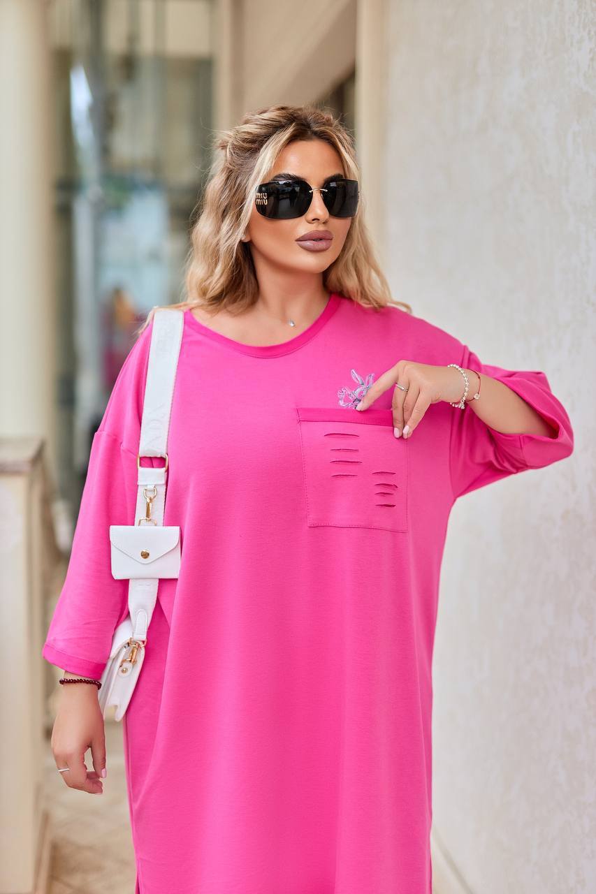 Описание: платье широкого кроя, по карману разрезы.