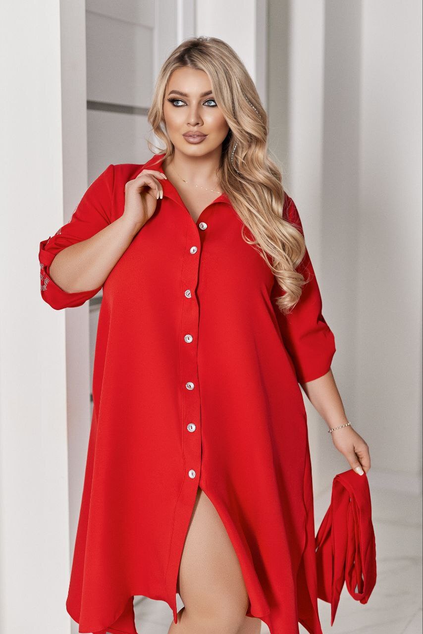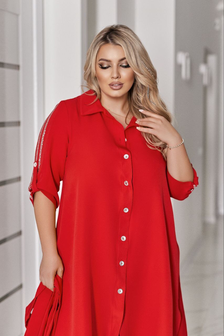 ■ Платье-рубашка имеет варианты декора — стразовые лампасы на рукавах и спине, придает стройности фасону и праздничный образ.