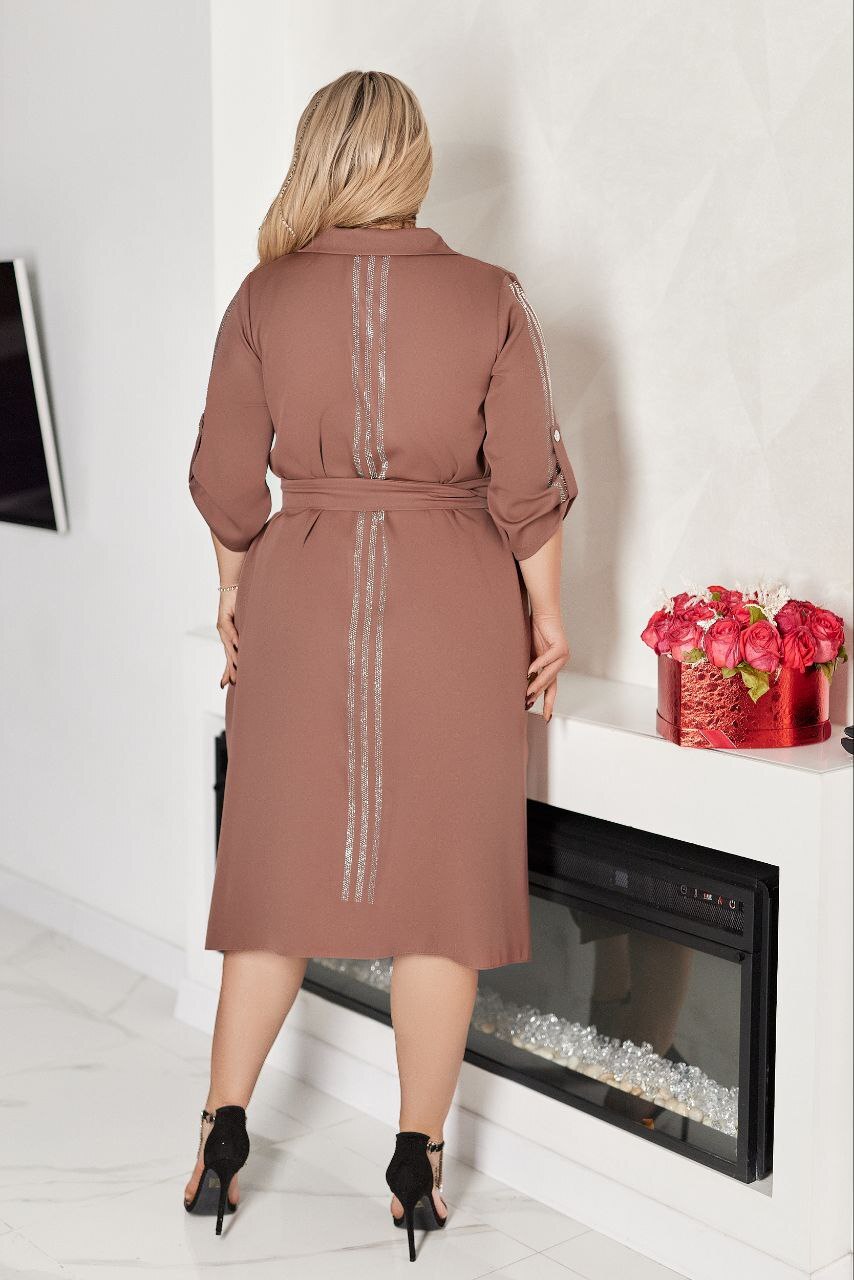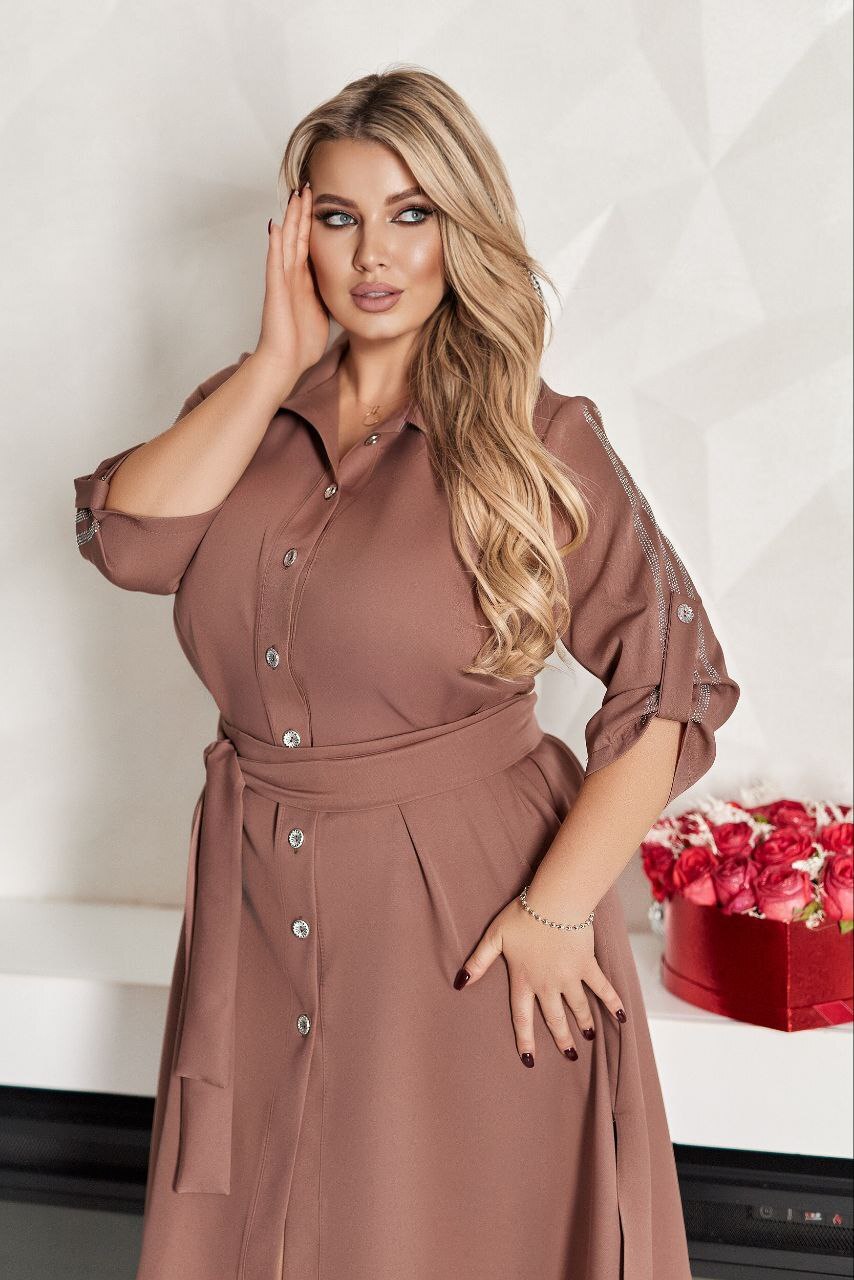 ■ Платье-рубашка имеет варианты декора — стразовые лампасы на рукавах и спине, придает стройности фасону и праздничный образ.