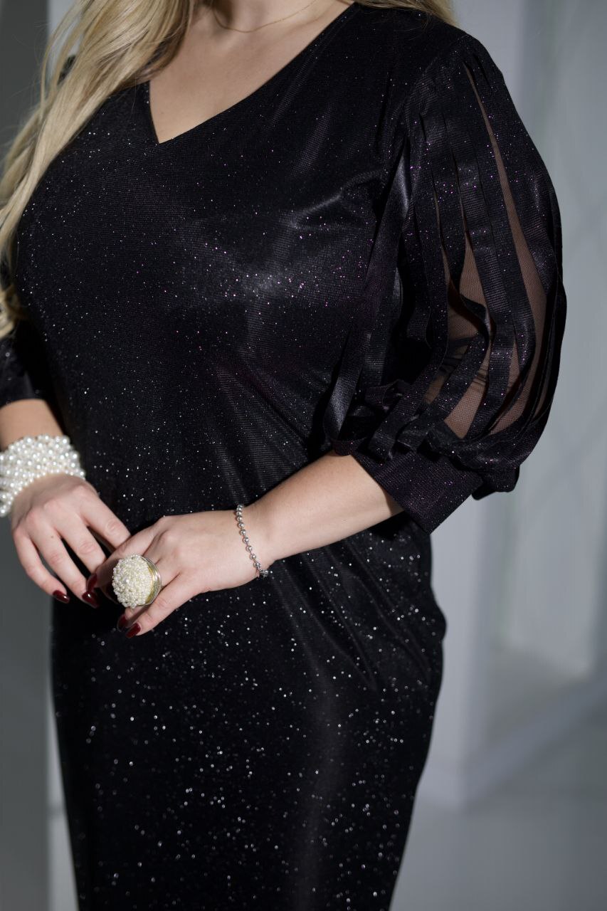 Ткань – глиттерный трикотаж с блестками, эластичный, приятный к телу, хорошо держит форму.