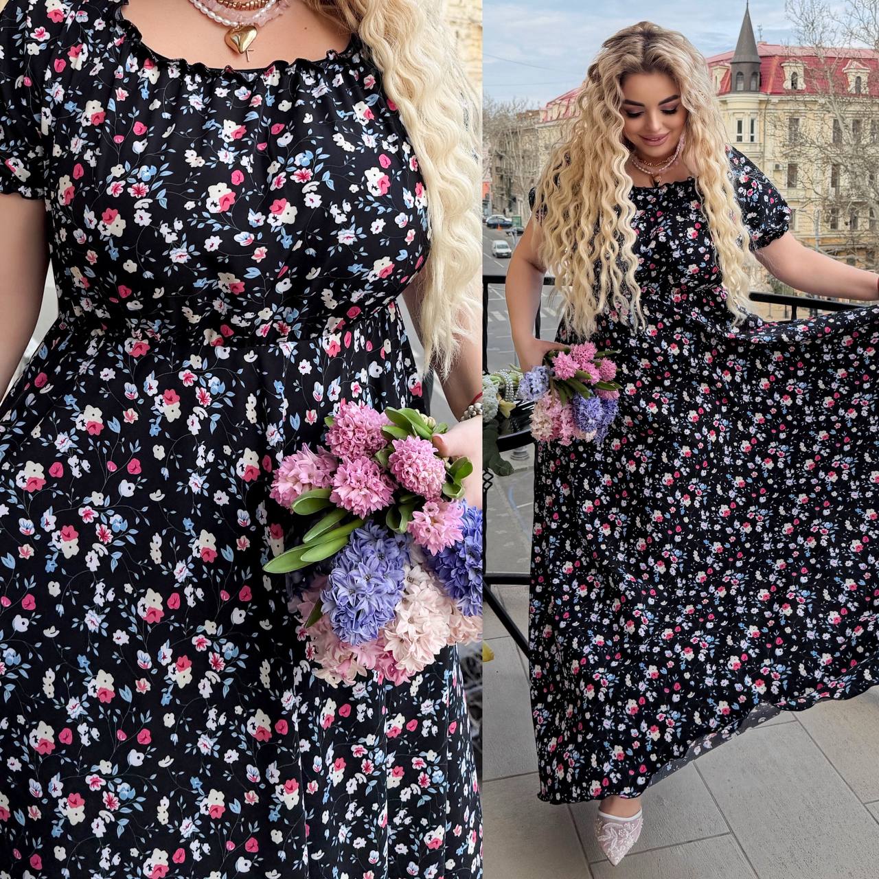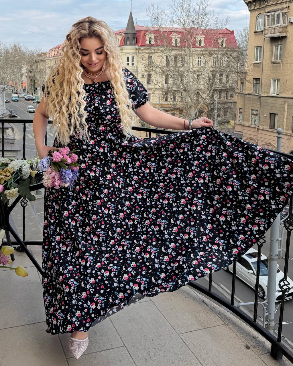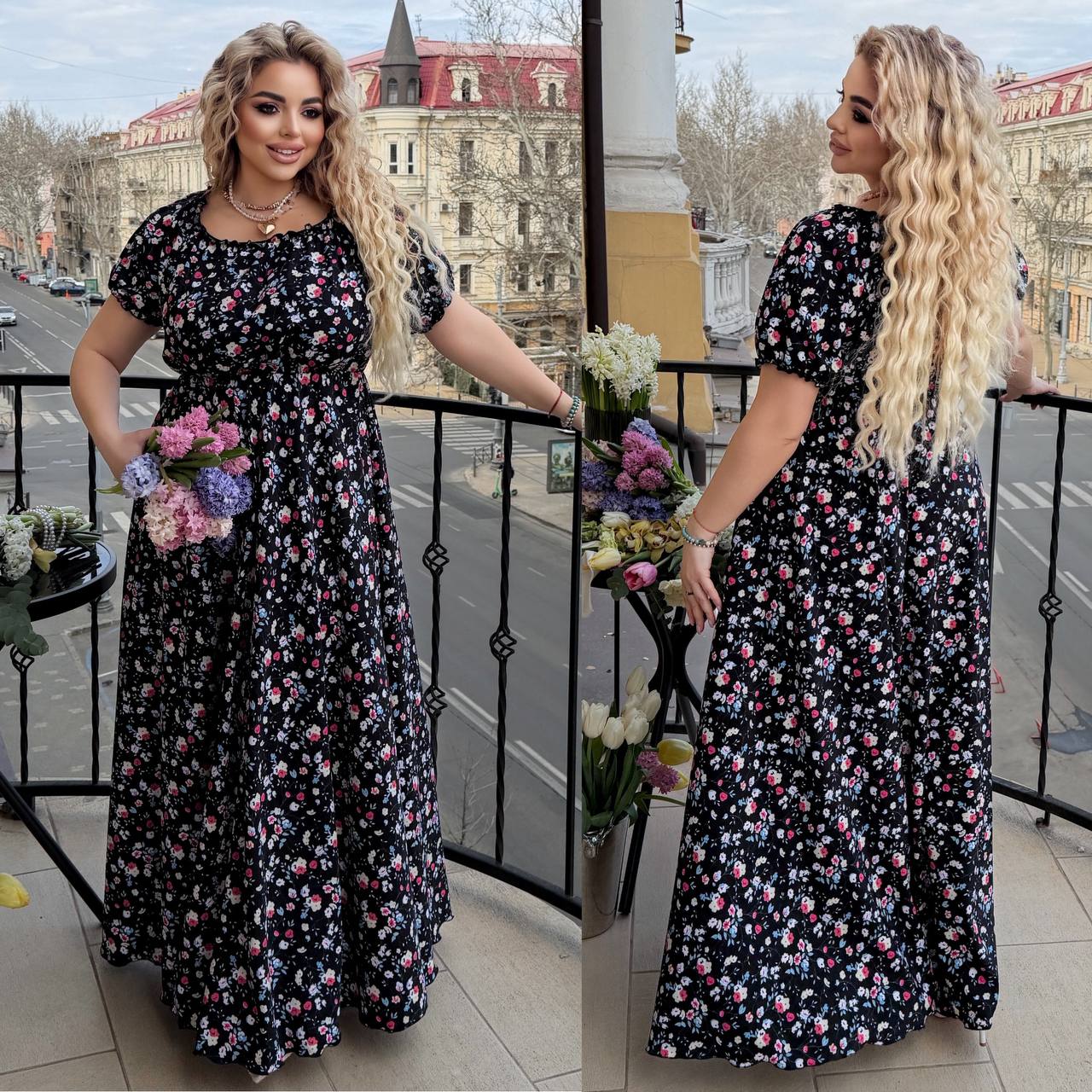Легкое воздушное платье в длине макси. Приятная ткань, которая красиво драпируется. Нежный цветочный принт придает образу женственности и свежести.